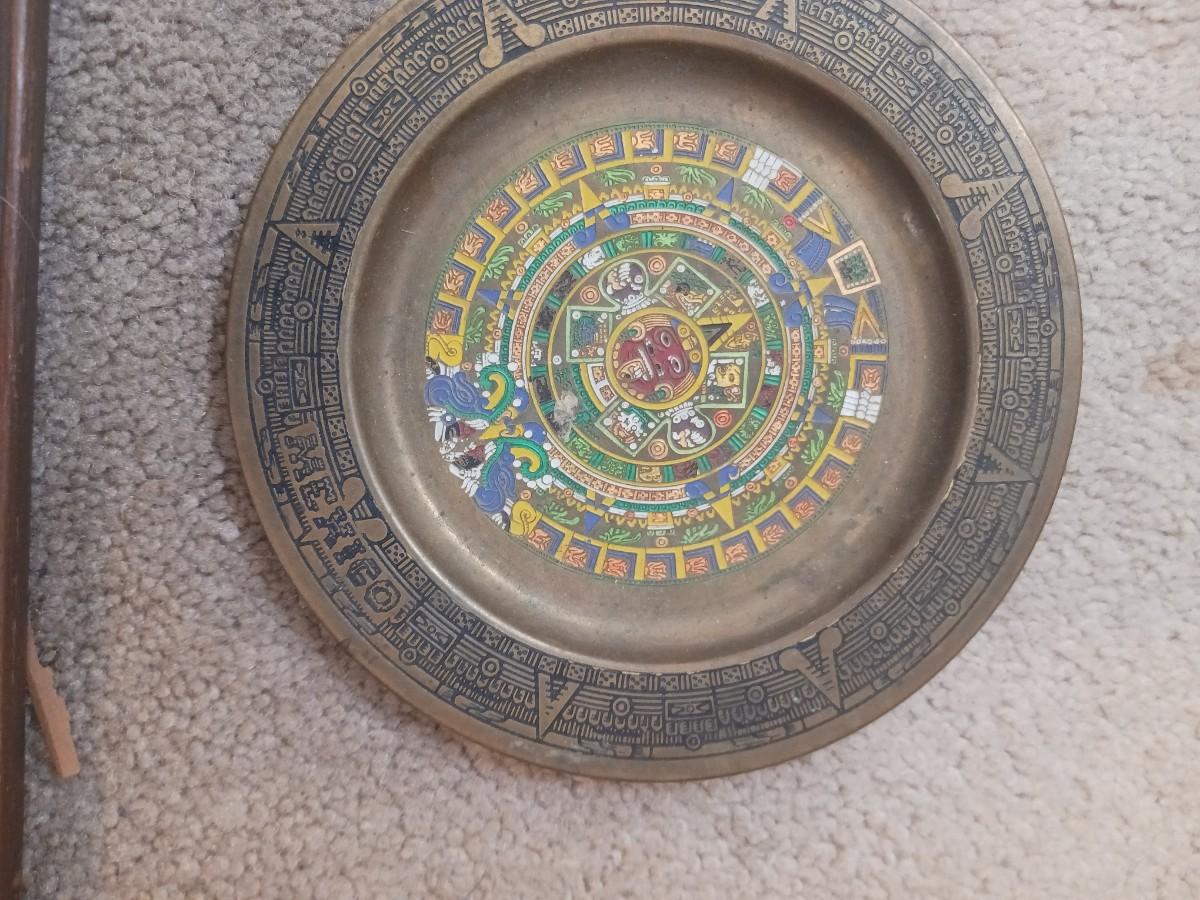 SMALL BRASS MAYAN CALENDAR, ROMA. VENEXIA, AND THE CITTA DEL VATICANO PICTURED.