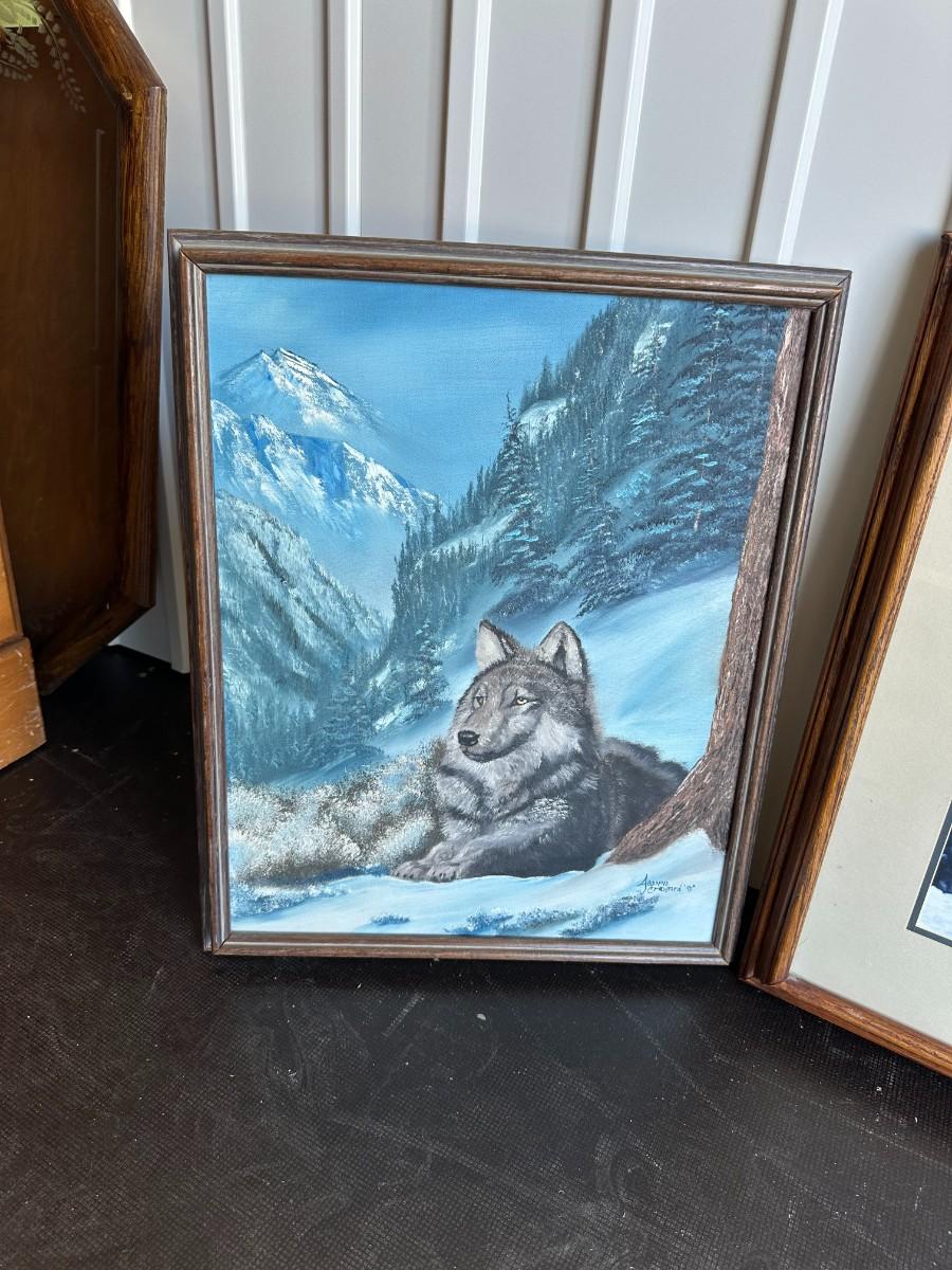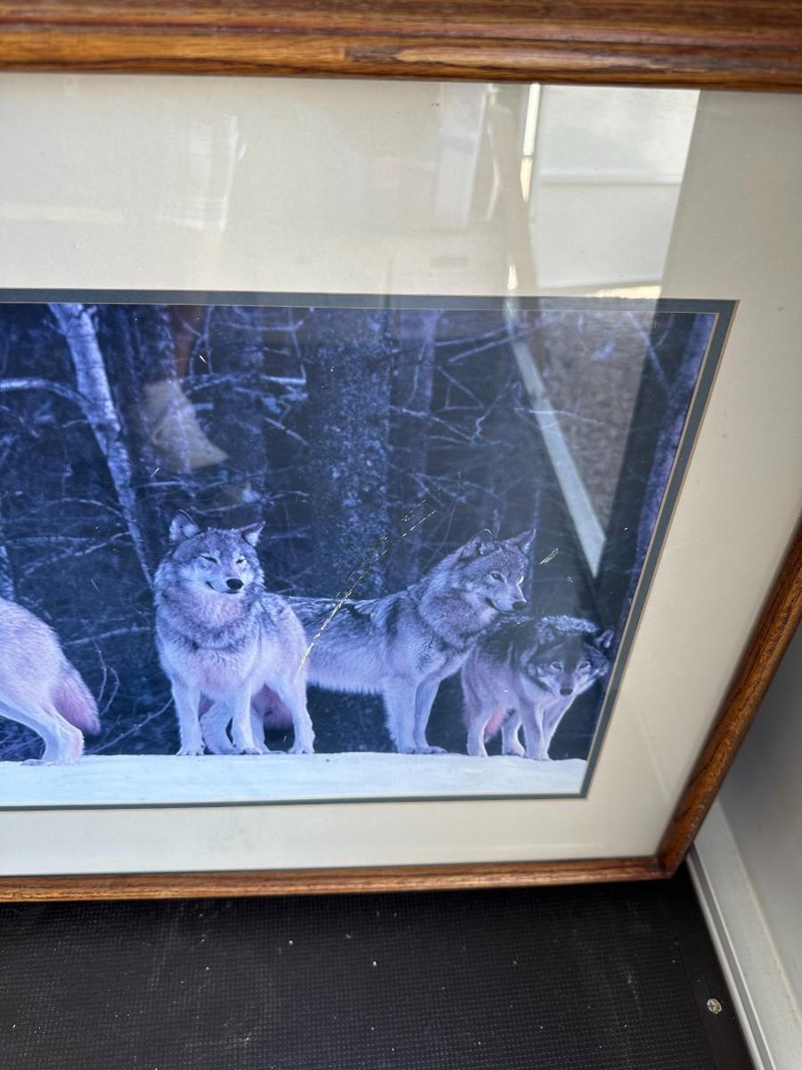 Large picture measures 42-1/4”L x 23” and does have some damage to the picture, see pictures