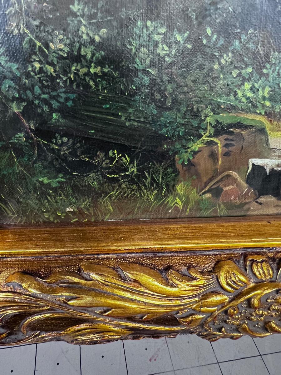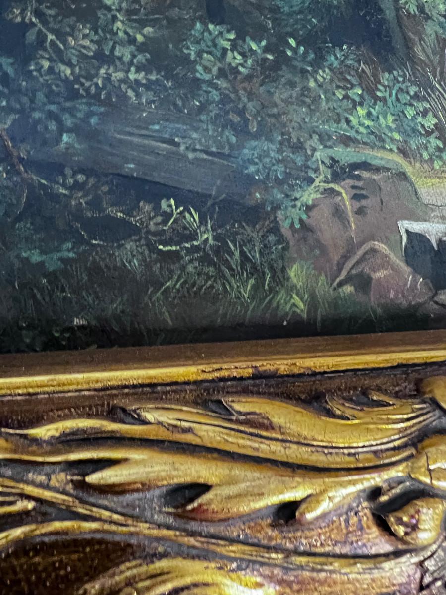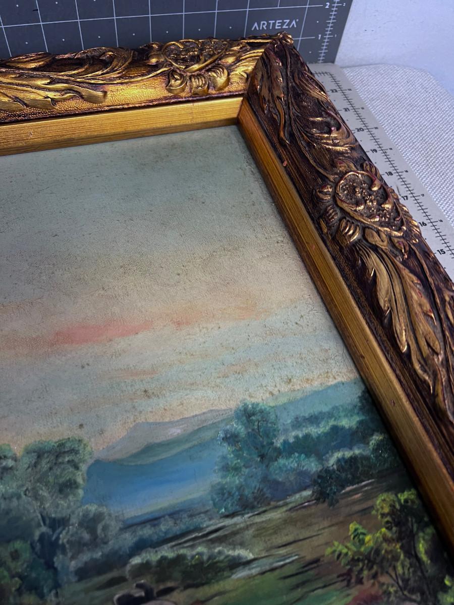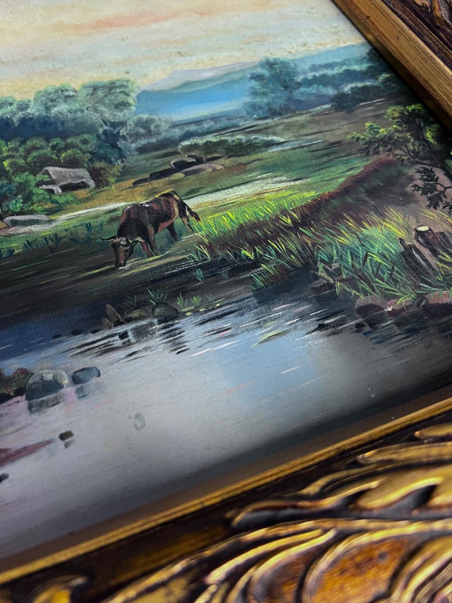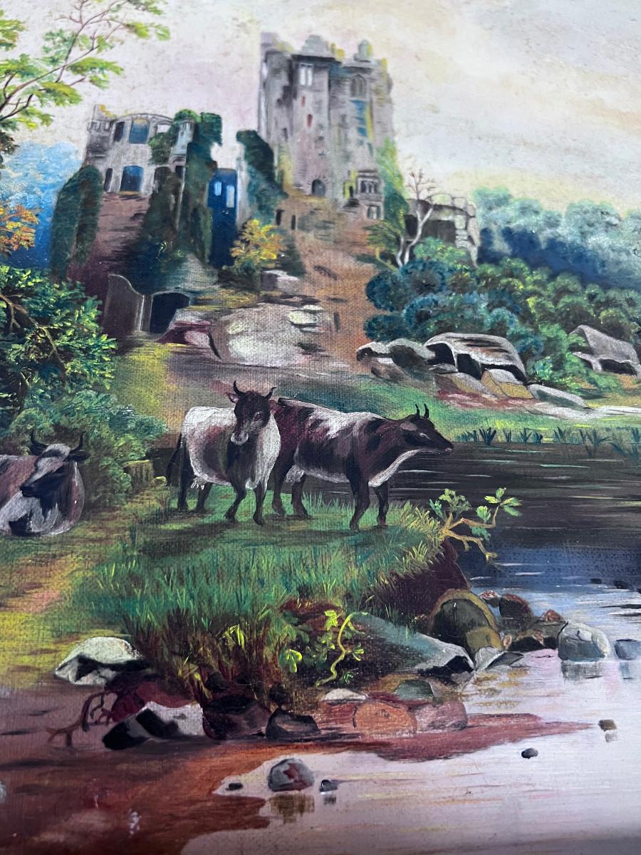 Picturesque! Antique European Oil on Canvas Painting, Castle and Cows