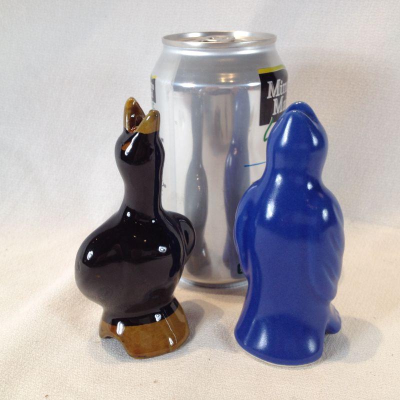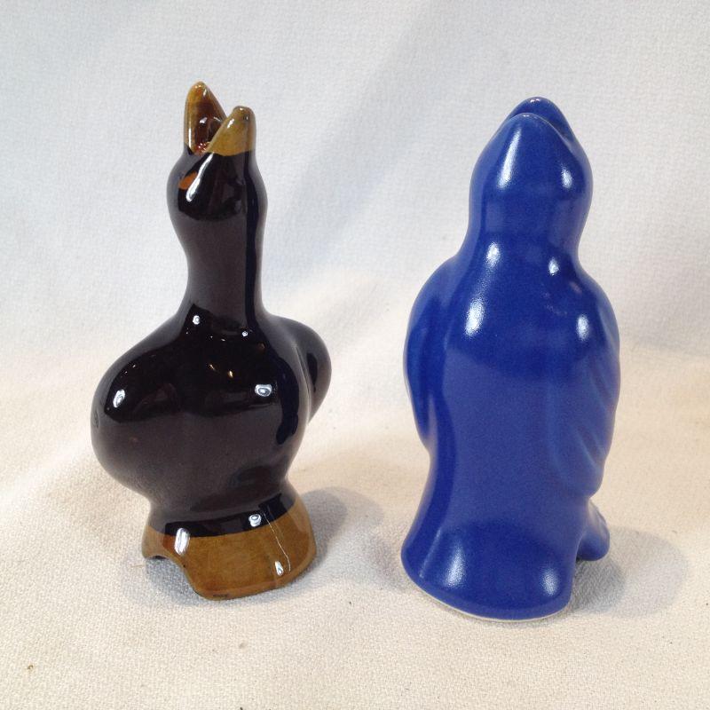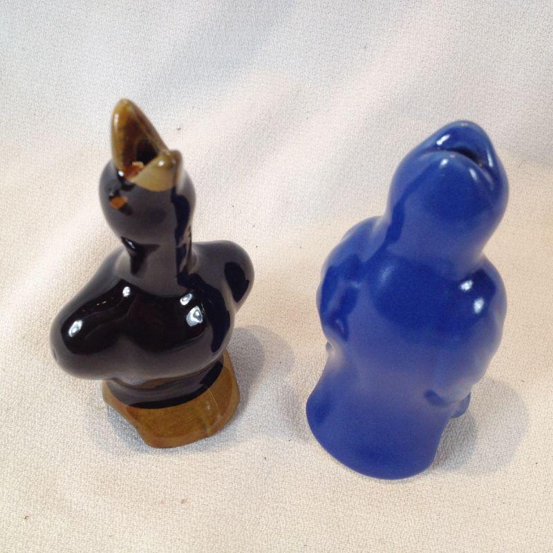 This lot is for a pair of Pie Birds. One pie bird is vintage, the other dated 1999. The black pie bird is vintage and made in England. The blue pie bird is marked THT @ 1999. Both are in very good condition and ready to sing when your pie is done.