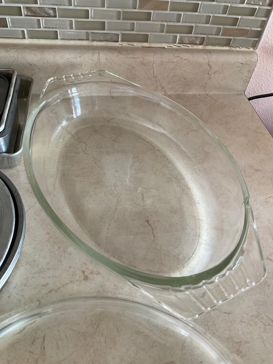 Pie plates, loaf tins and casserole dish