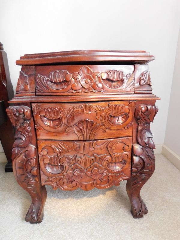 Piece Two of Two Antique Gregorian Mahogany Side Dresser has some scratches and wear. Both pieces of equal condition