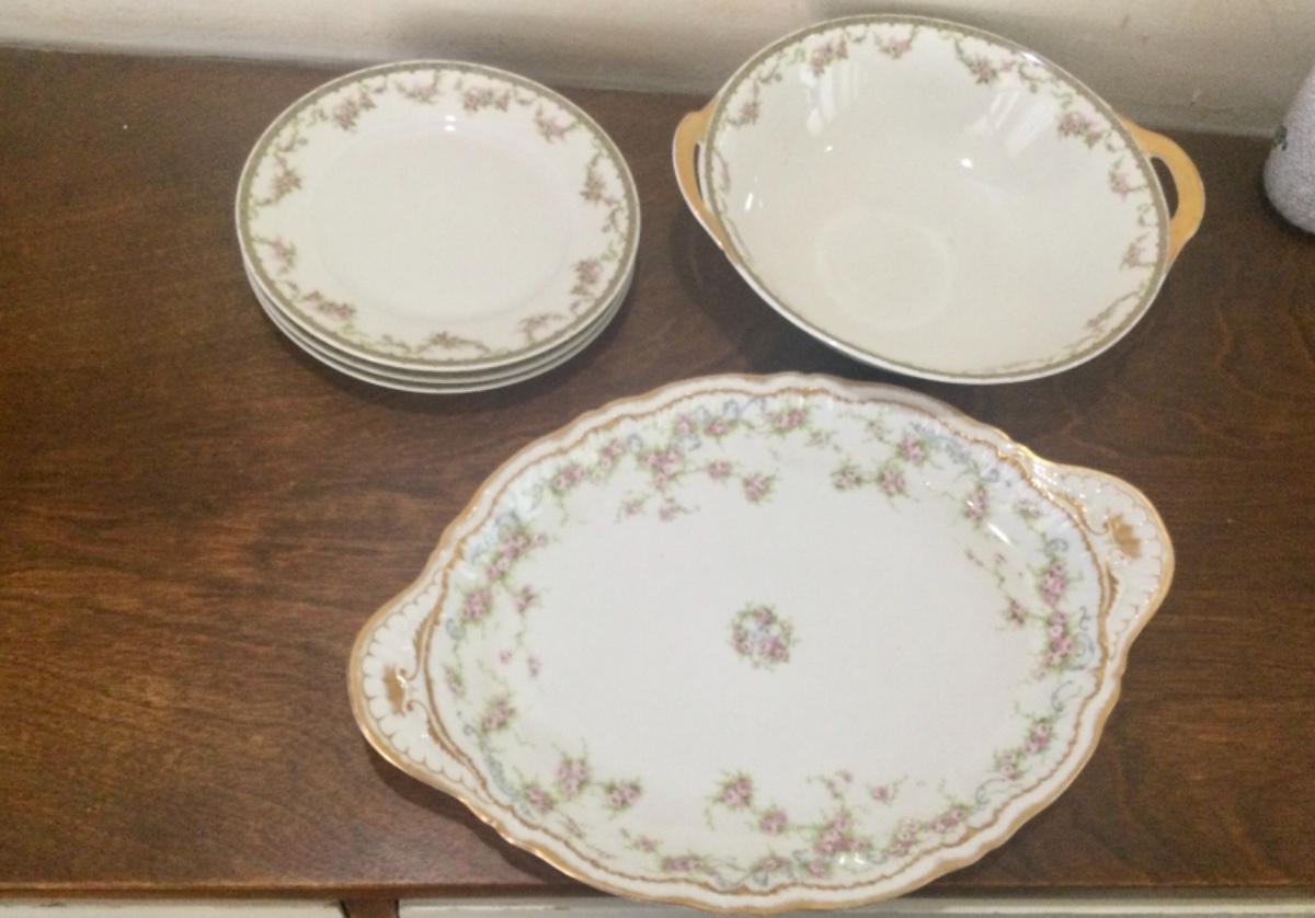 Pieces of Haviland China, 3 salad plates, platter, serving bowl