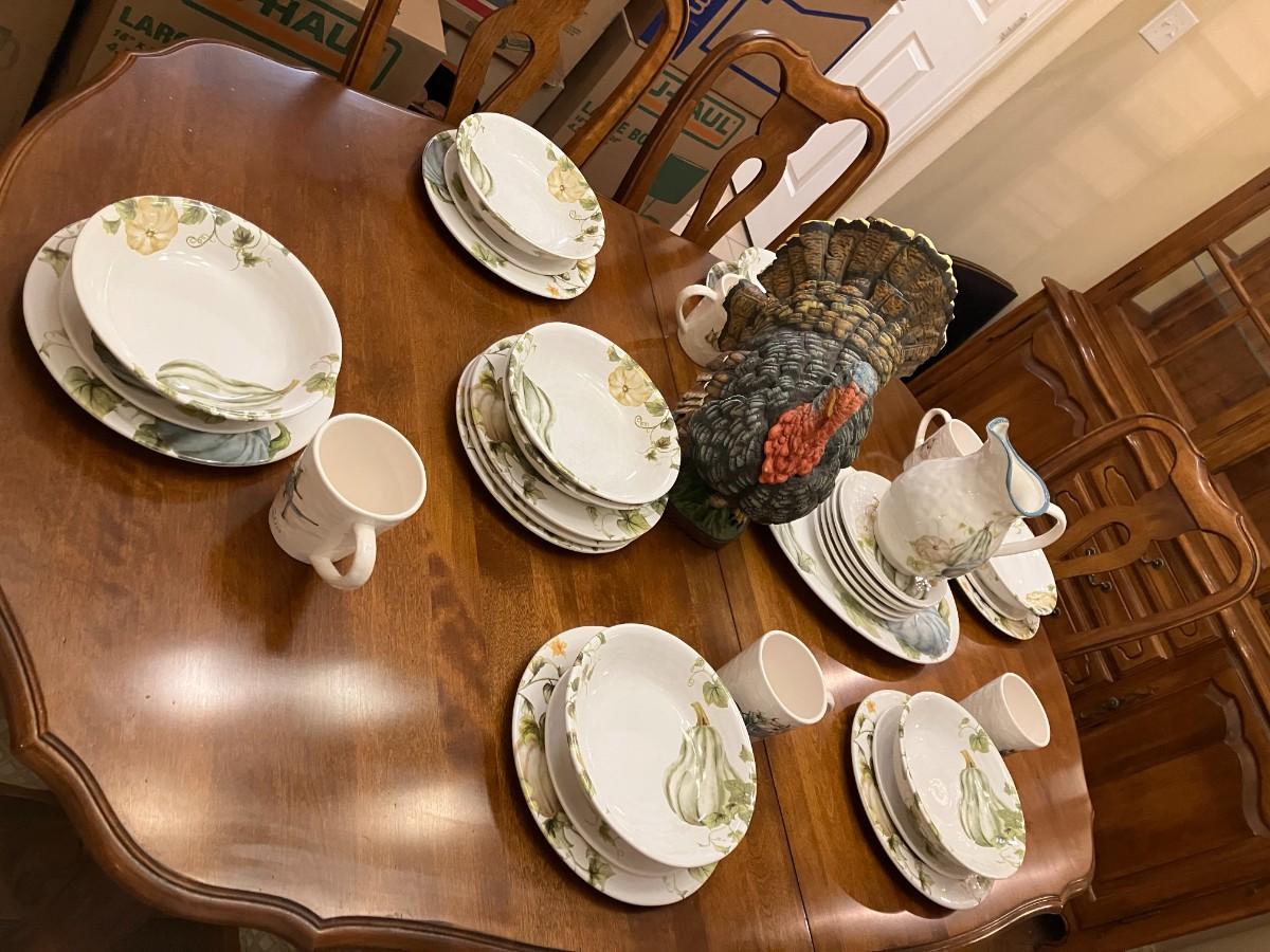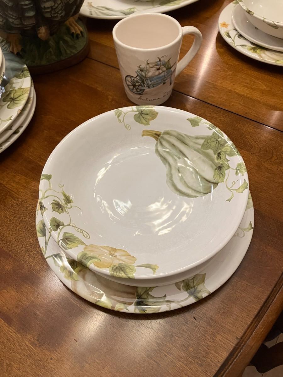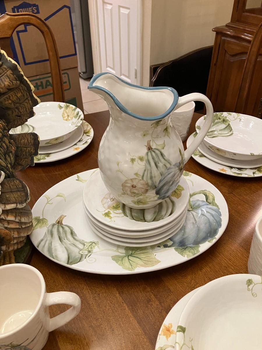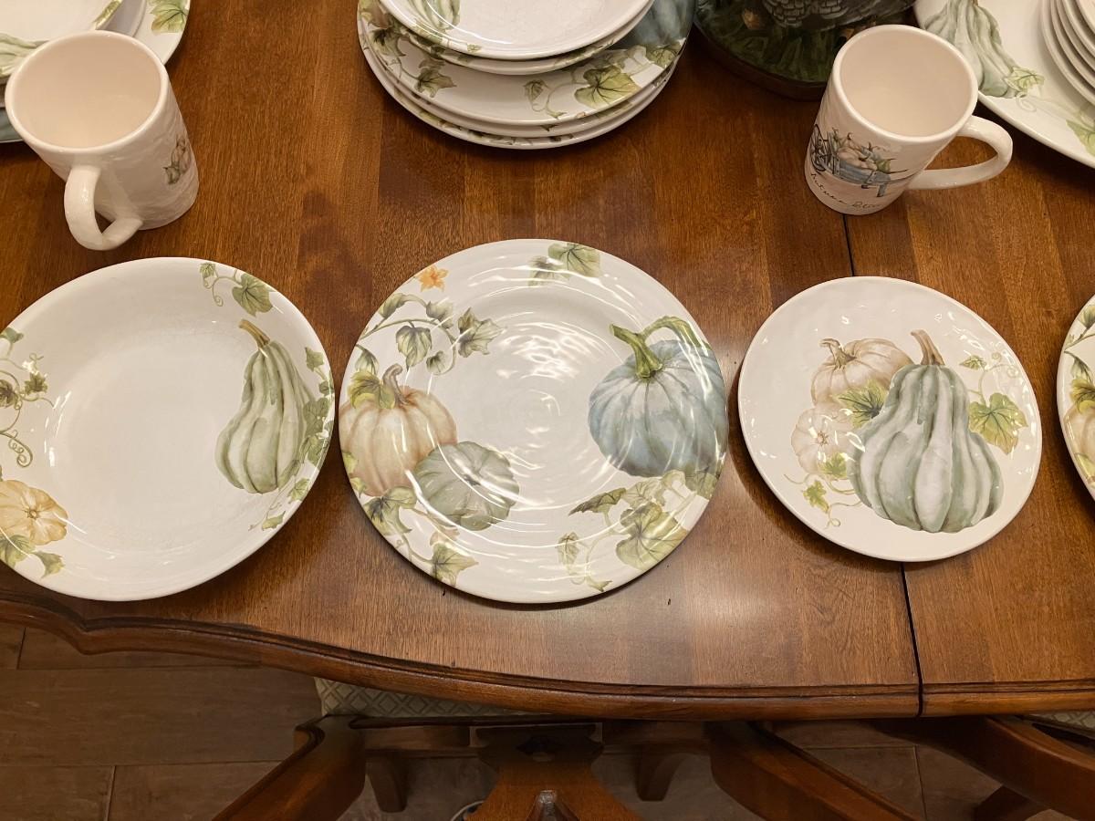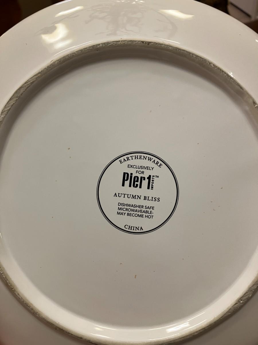 35 pieces of Pier 1 Autumn Bliss dishes.