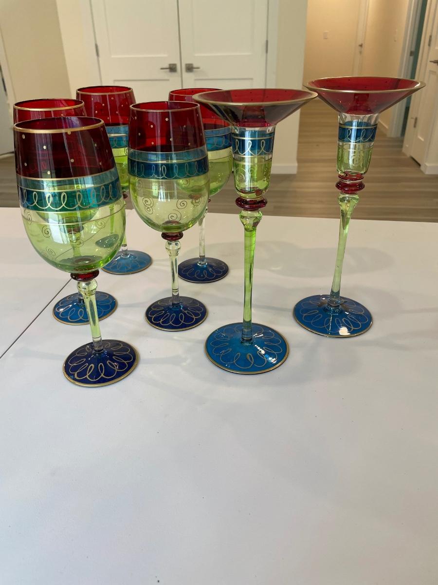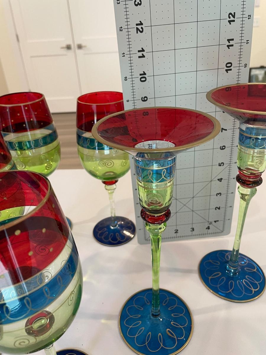 Set of 5 wineglasses and 2 candlestick holders in excellent condition