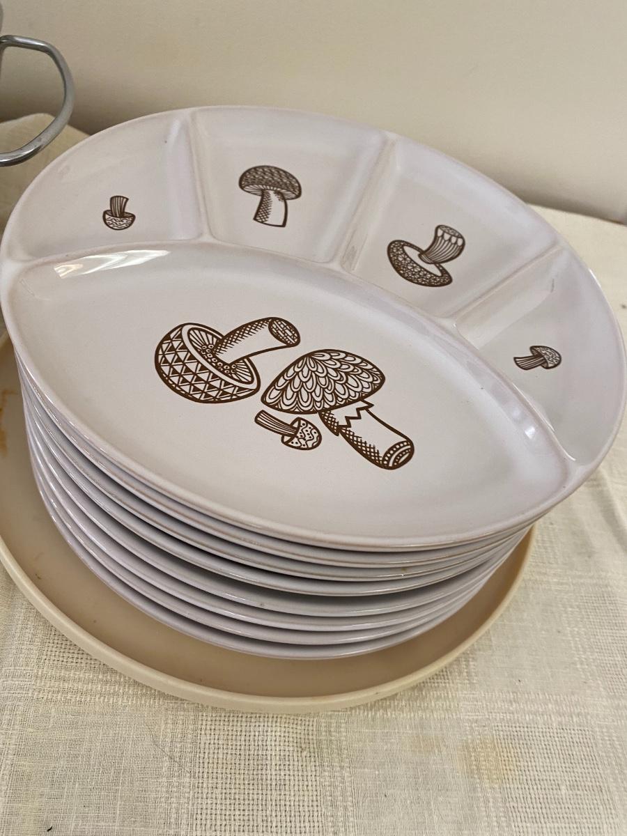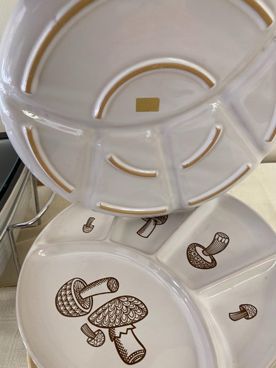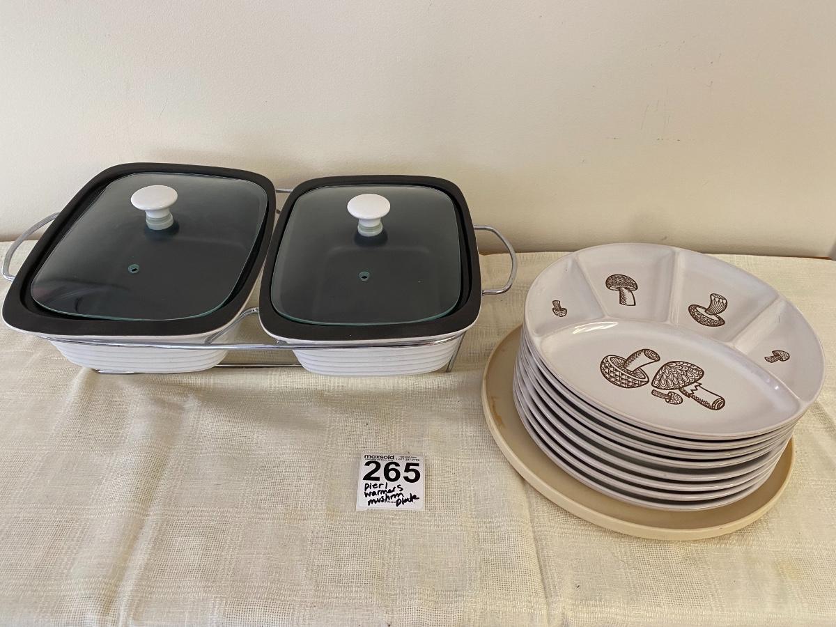 Pier 1 Food Warmer with Vintage Mushroom Plates
