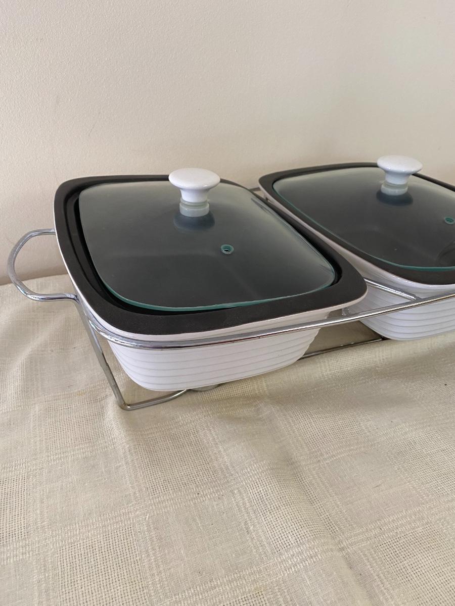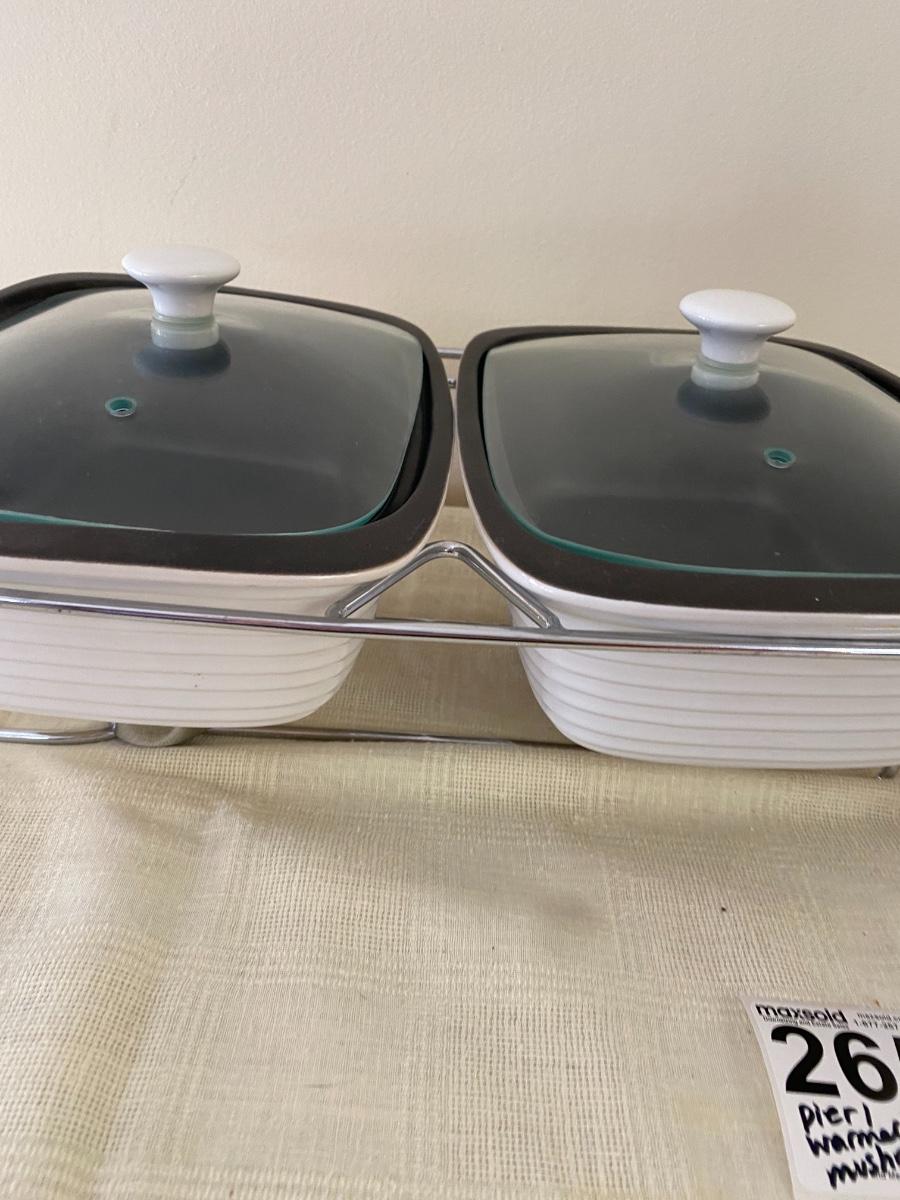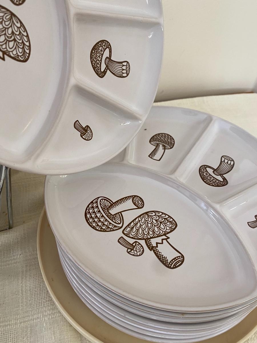 Pier 1 Food Warmer with Vintage Mushroom Plates