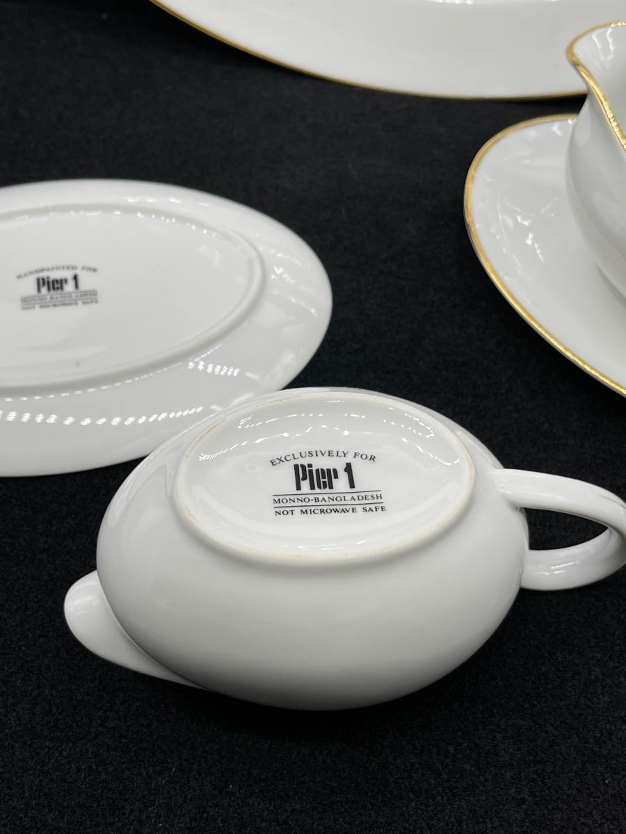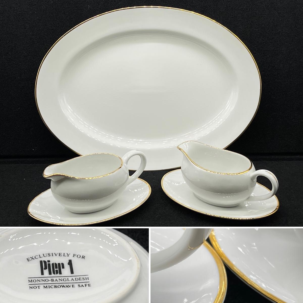 PIER 1 ~ Gold Rimmed Serving Platter & Two (2) Gravy Boats