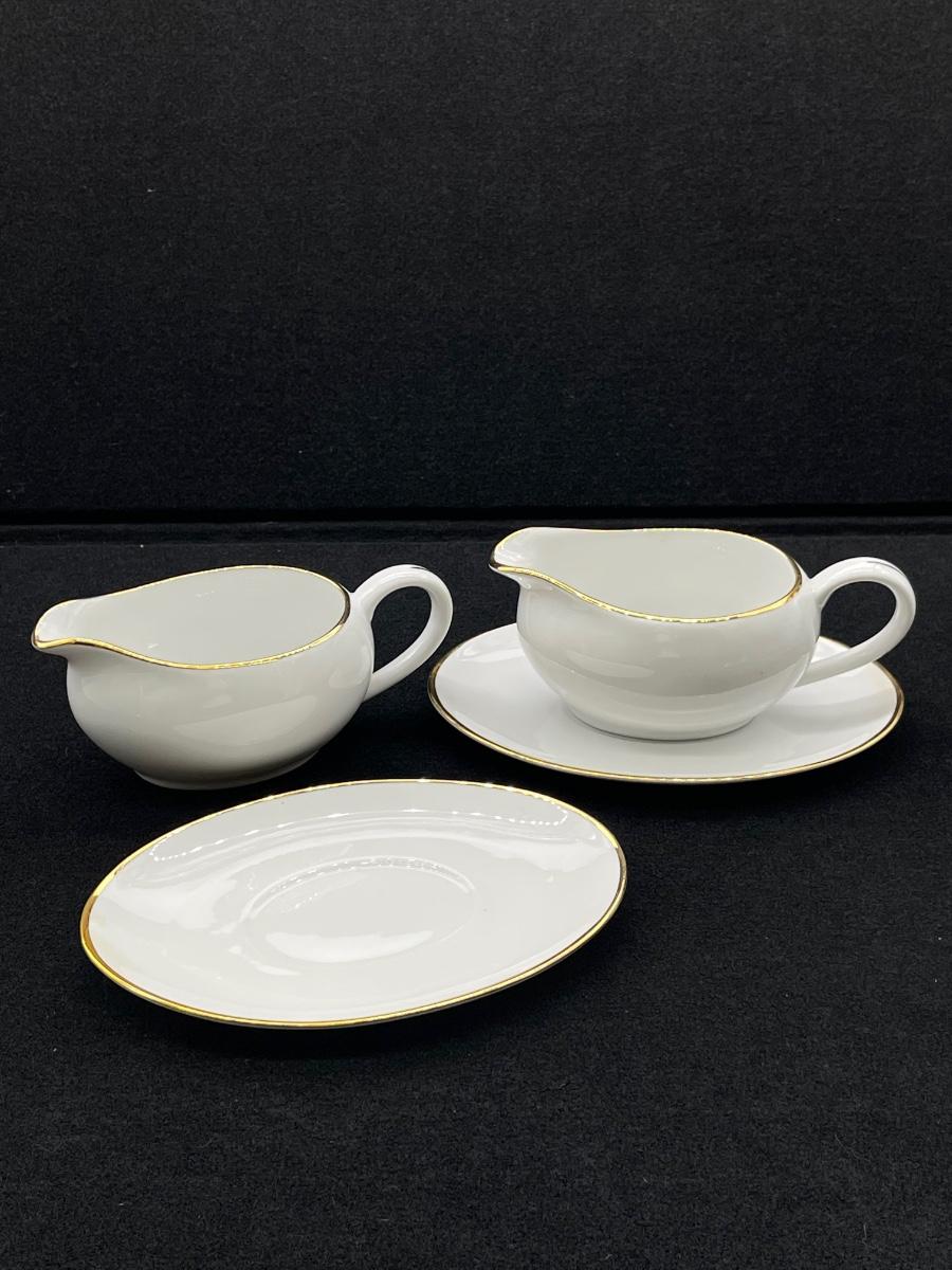 Gold Rim around pieces in excellent condition. Oval Platter= 16” x 11.5” & two gravy boats With Dish