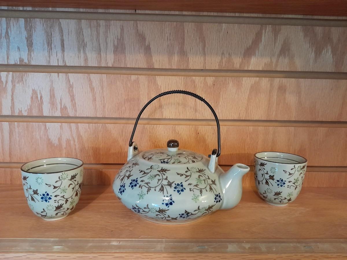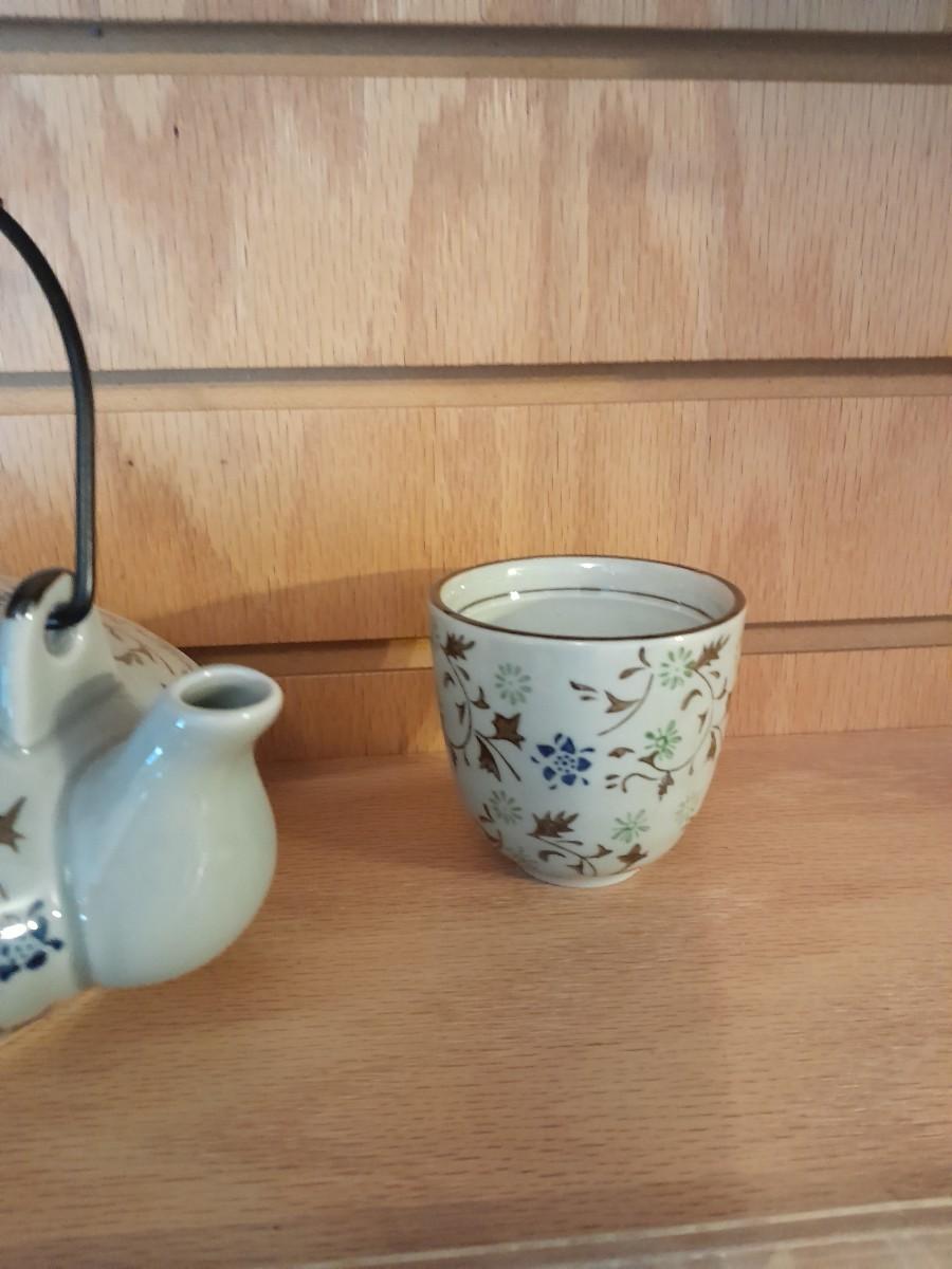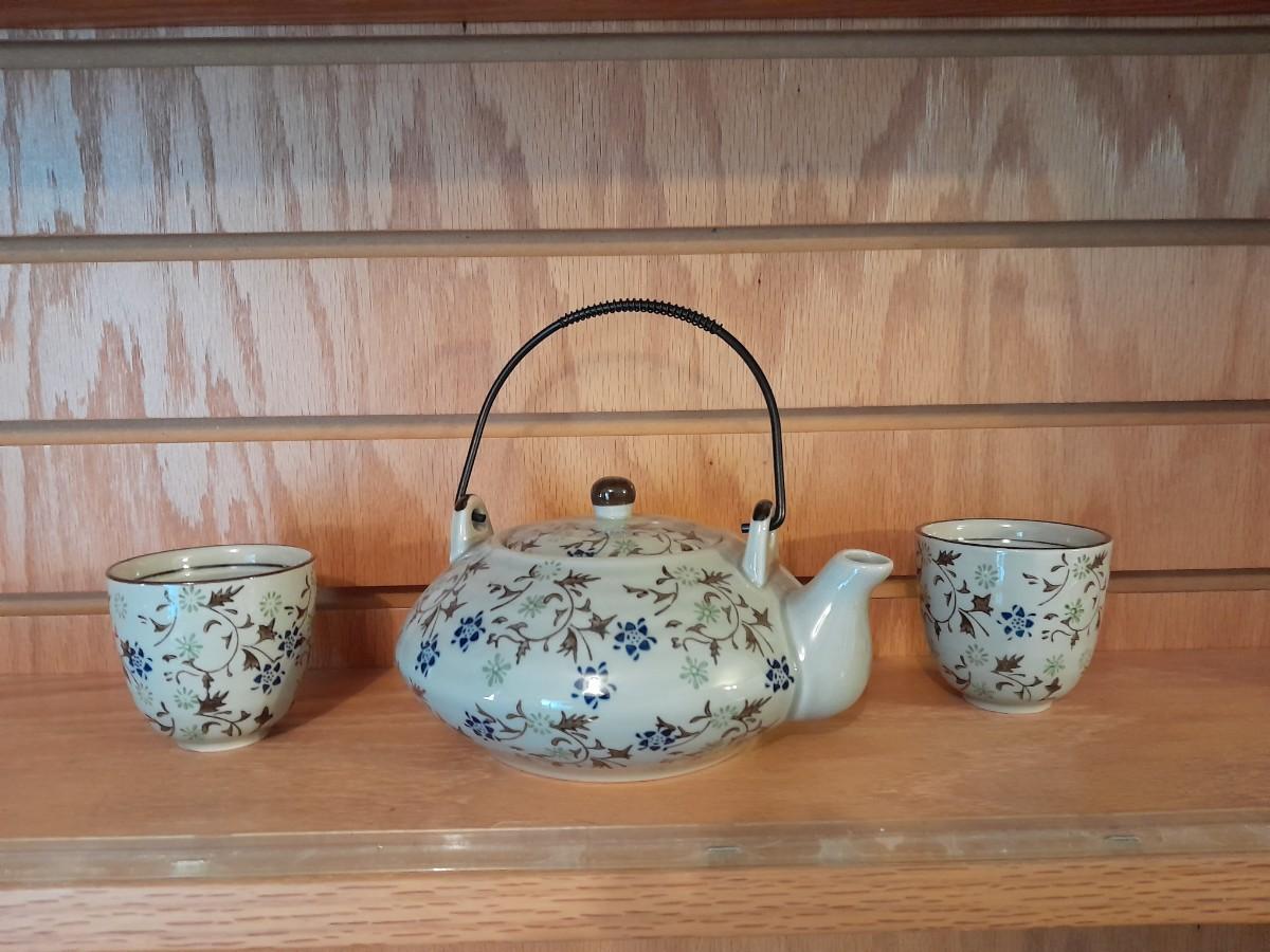 PIER 1 IMPORT TEA POT WITH TWO SMALL TEA GLASSES