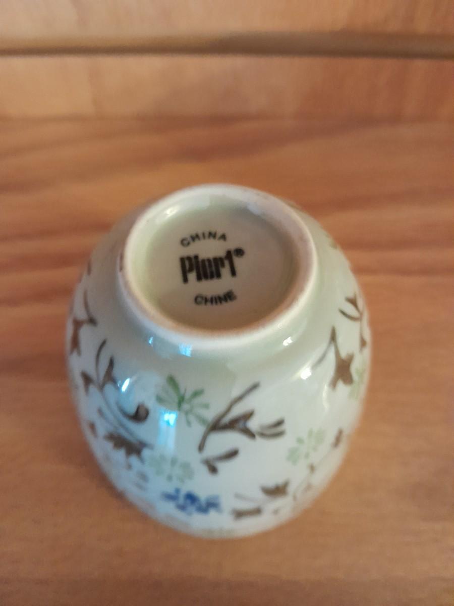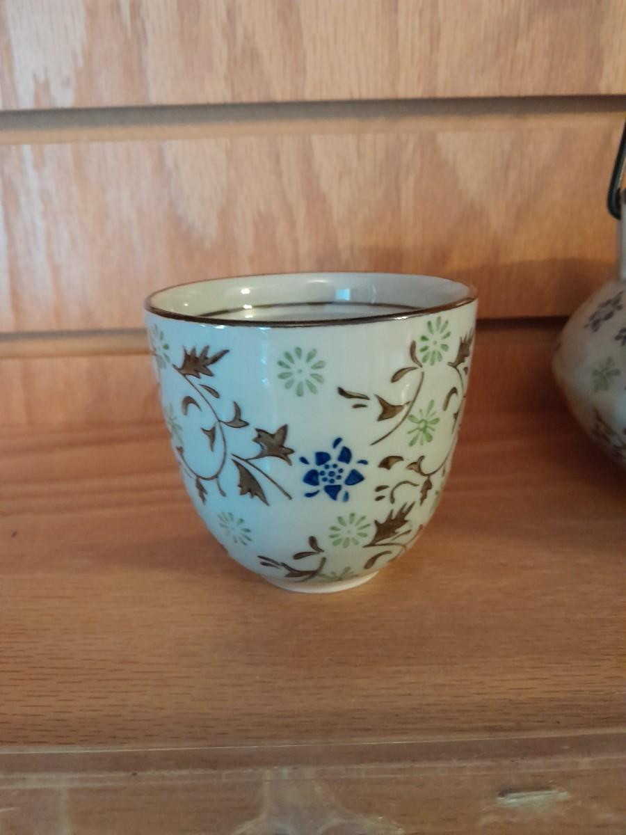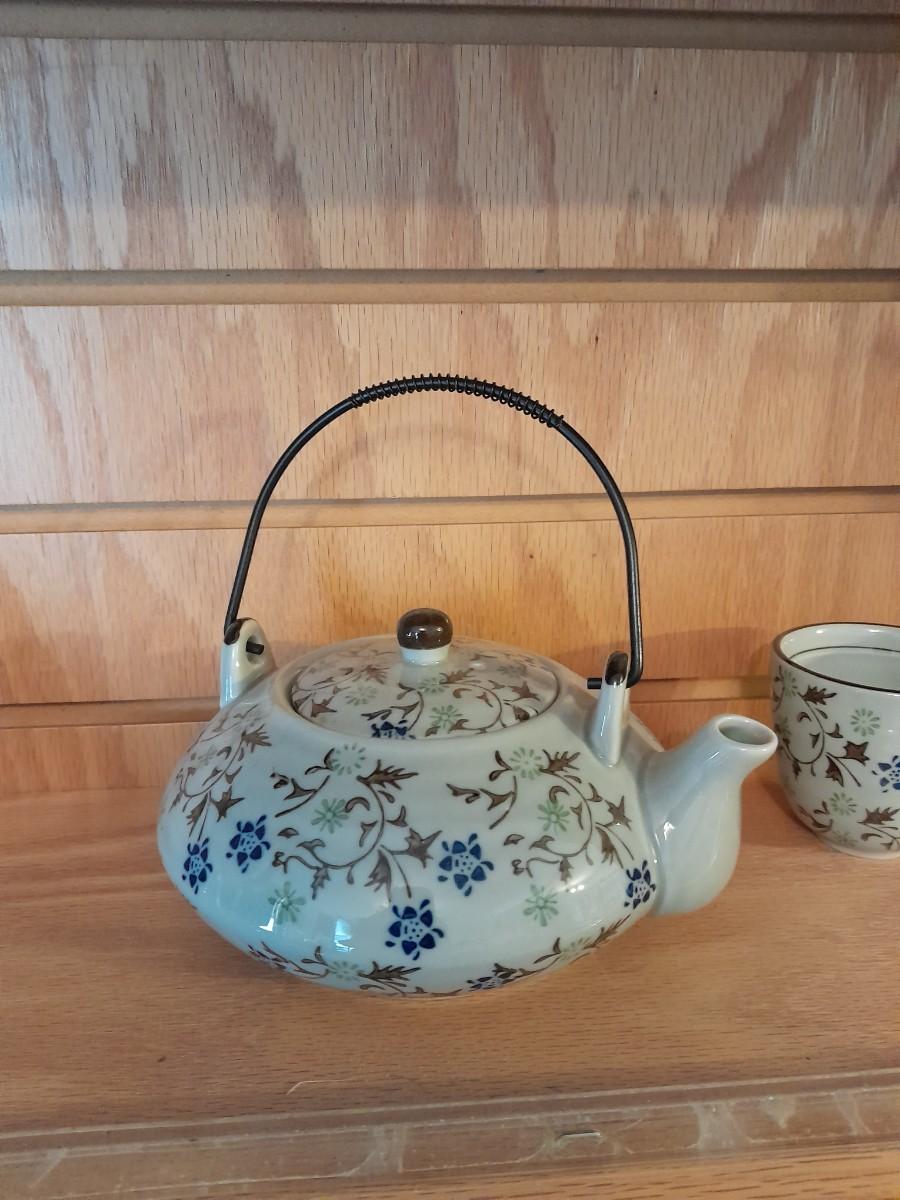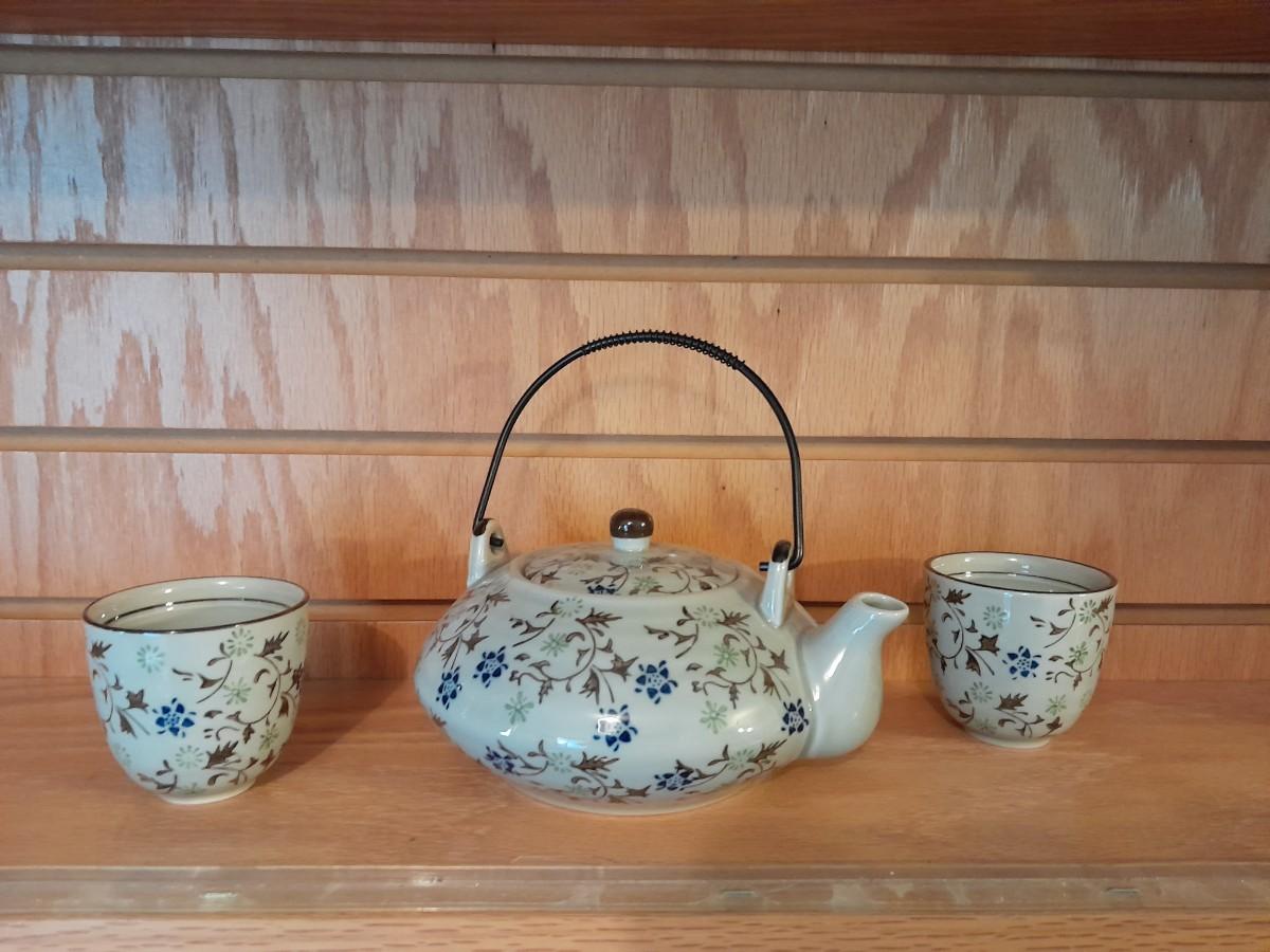 PIER 1 IMPORT TEA POT WITH TWO SMALL TEA GLASSES