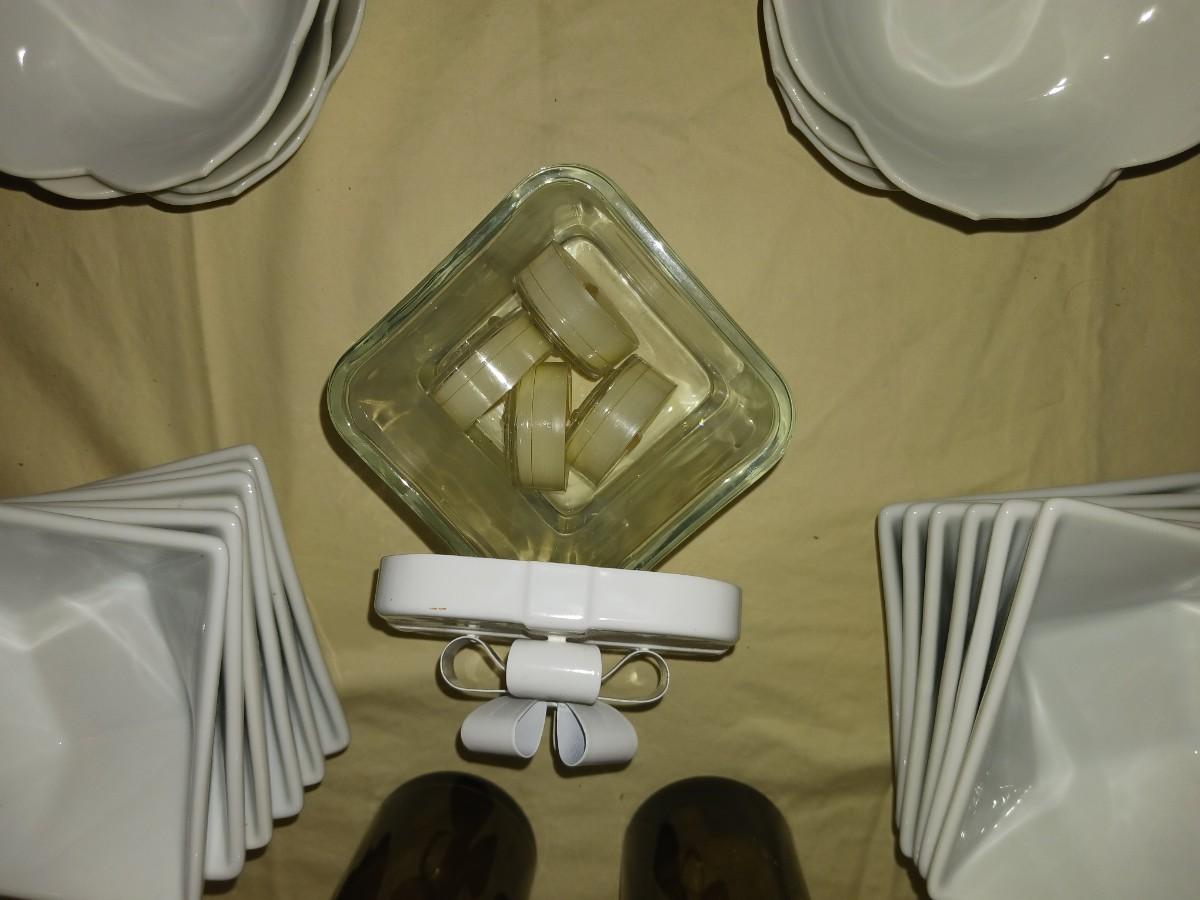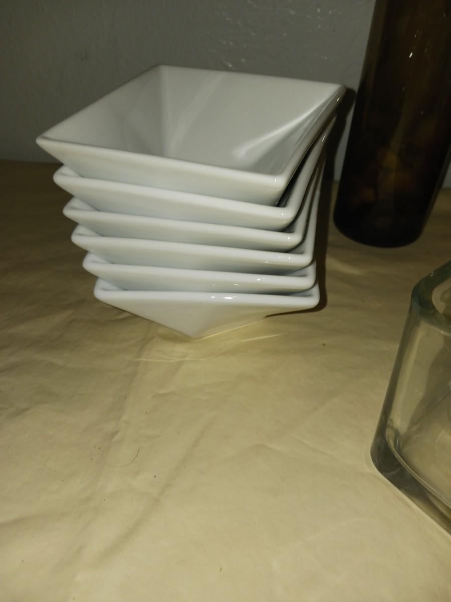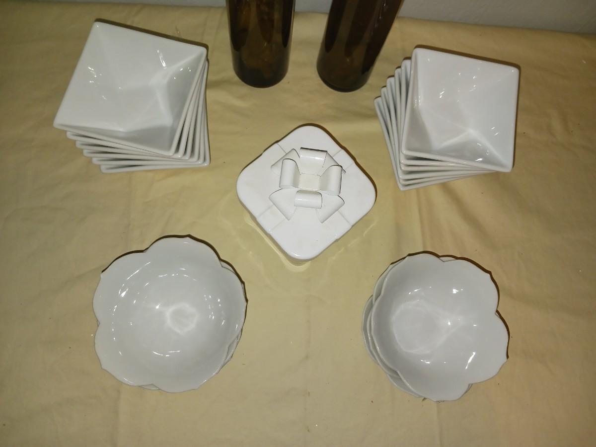 PIER 1 IMPORTS AND LOTUS SHAPED BOWLS, 2 SMOKE GLASS VASES