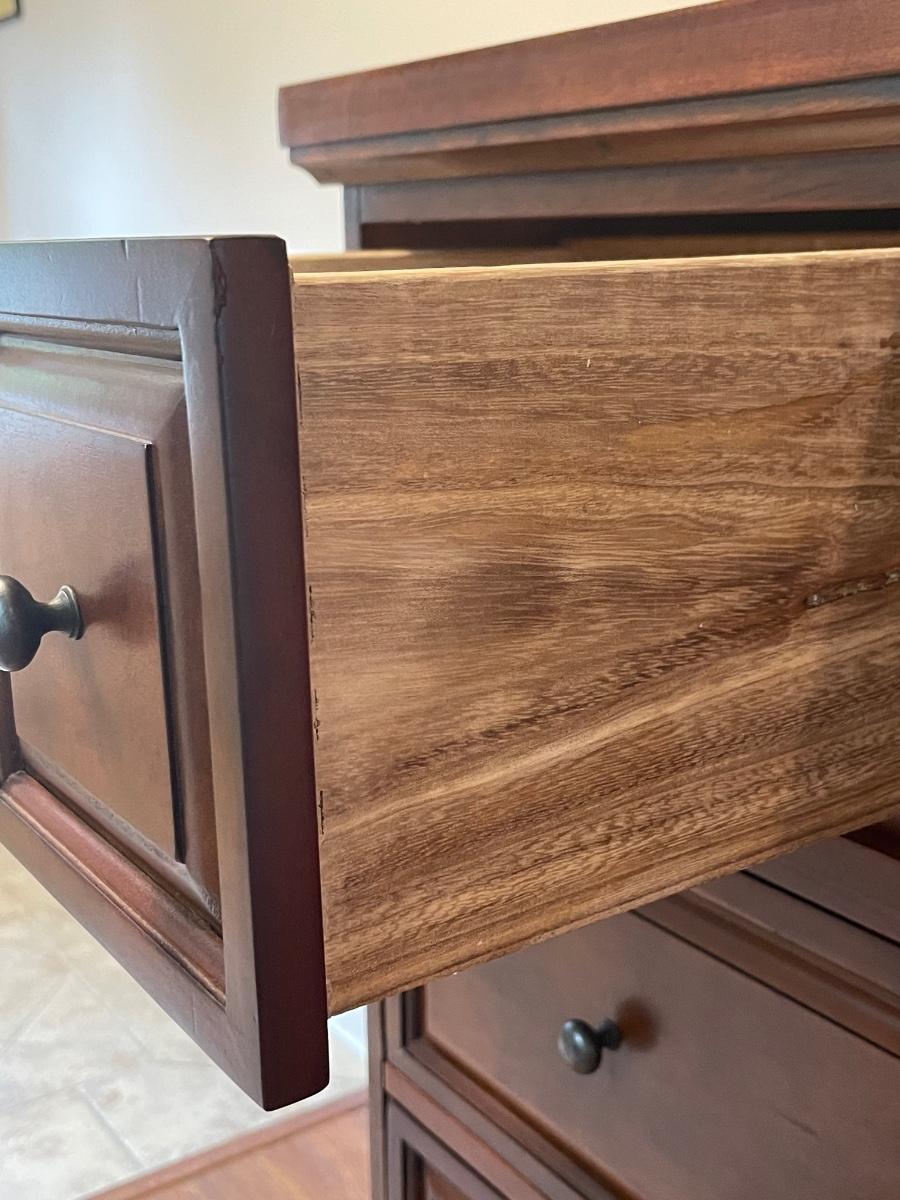 48" H x 36" W x 18.5" D ~ Dresser has some very minor water damage at the bottom, all drawers open smoothly.