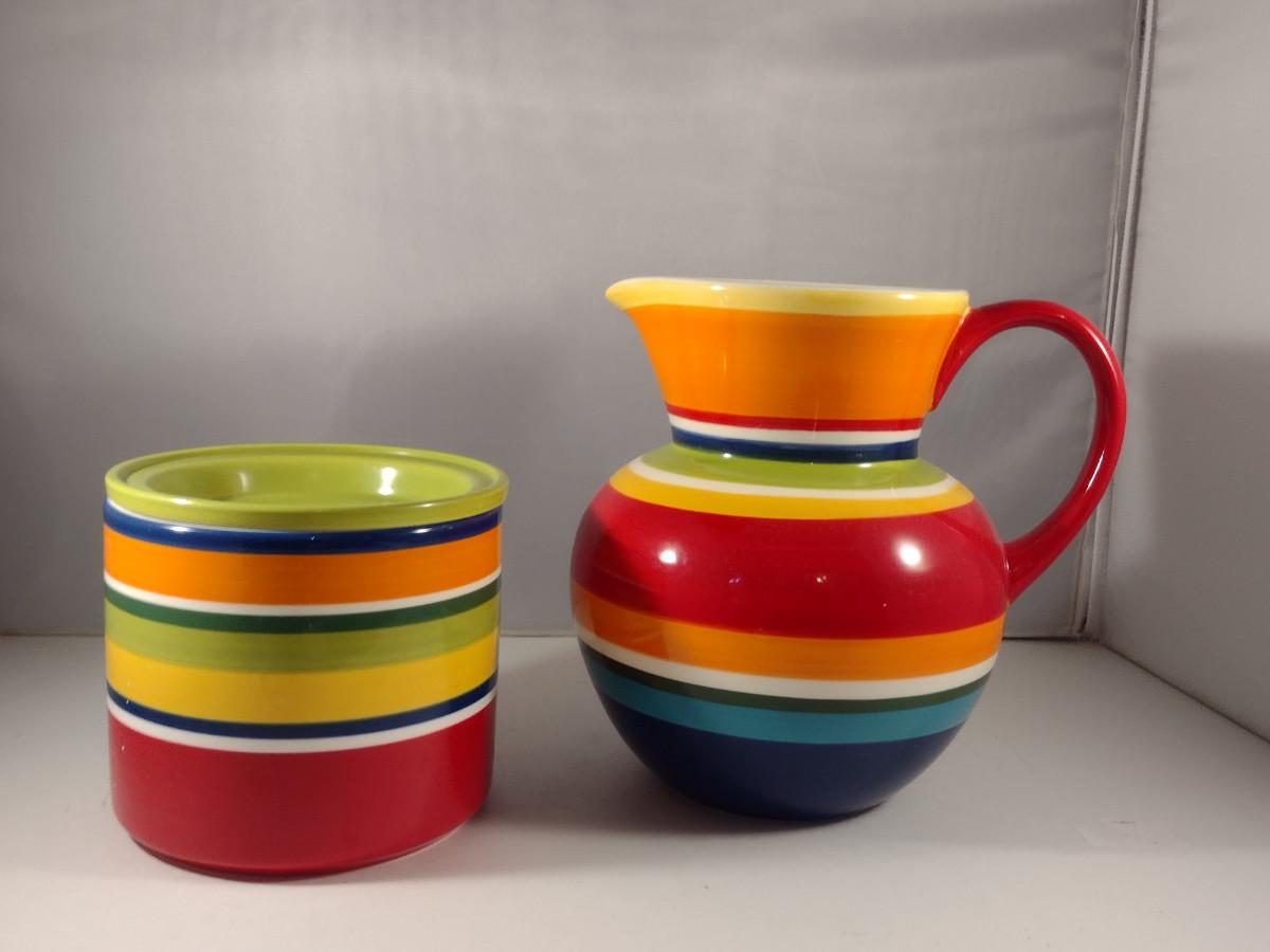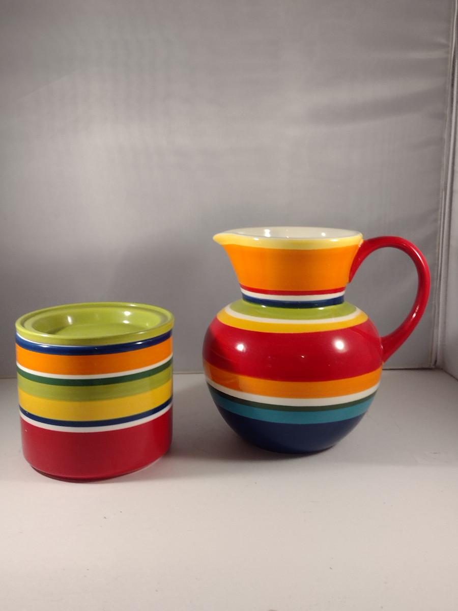 Pier 1 Imports Ceramic 'Summer Stripes' Pitcher and Container with Lid