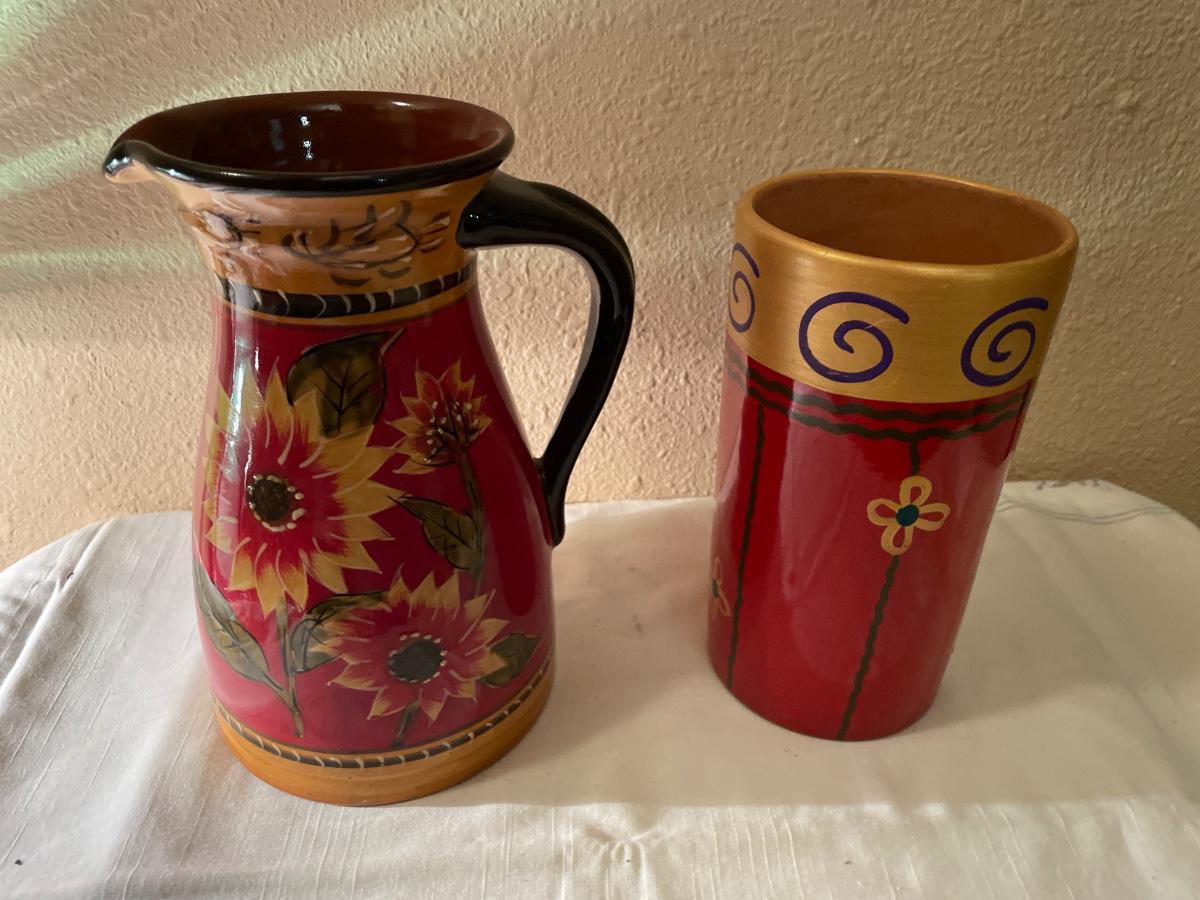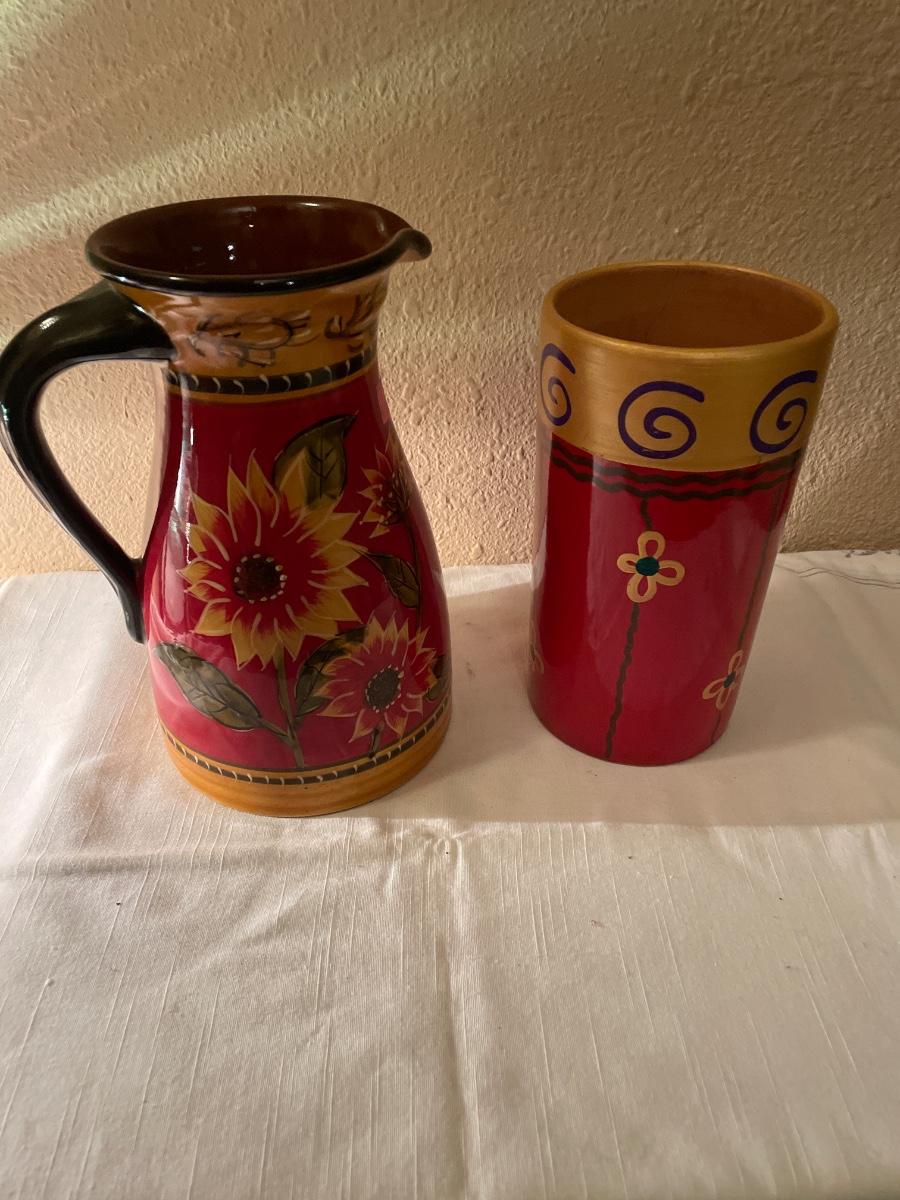 Includes flower painted pitcher and flower painted vase