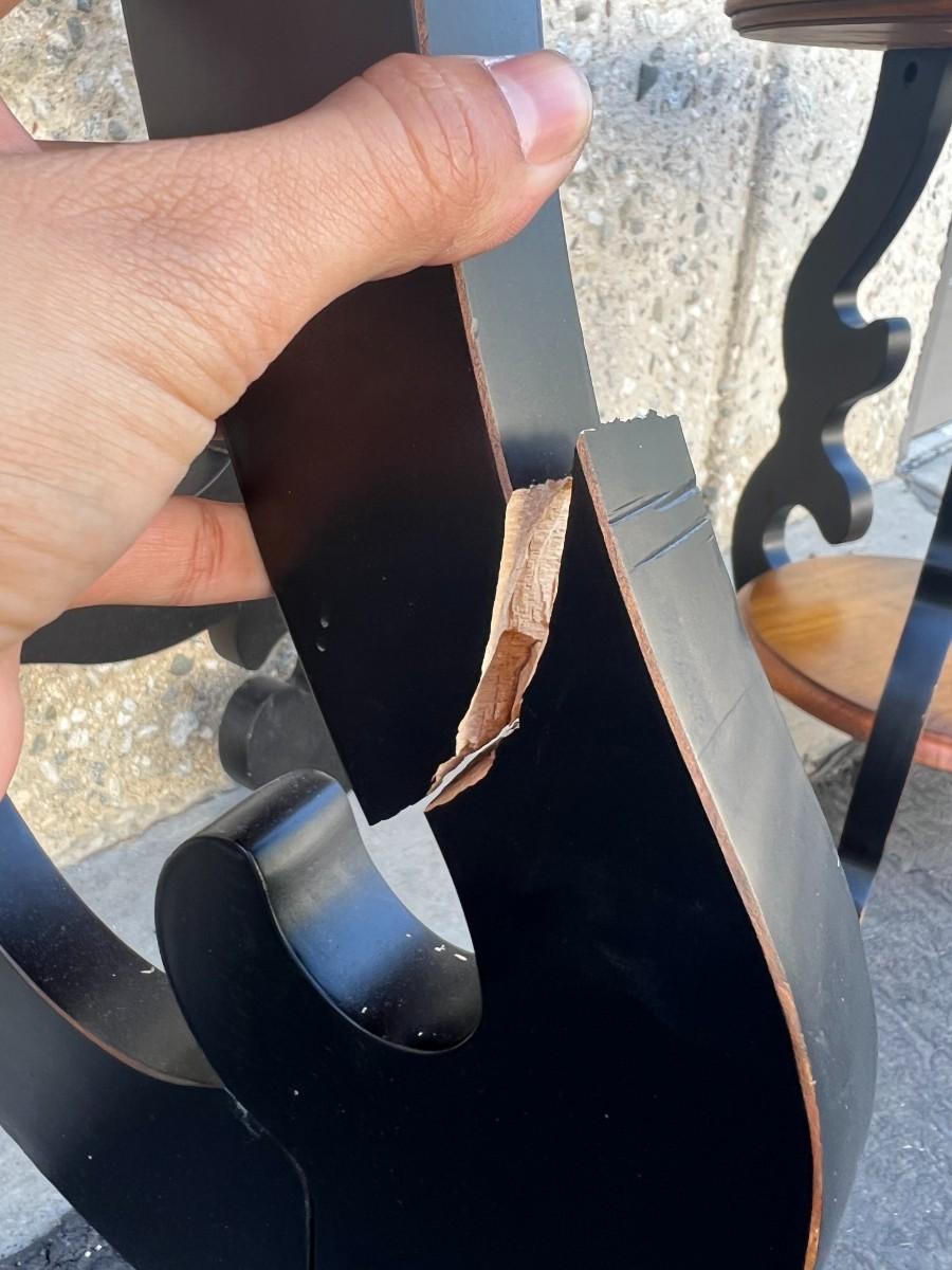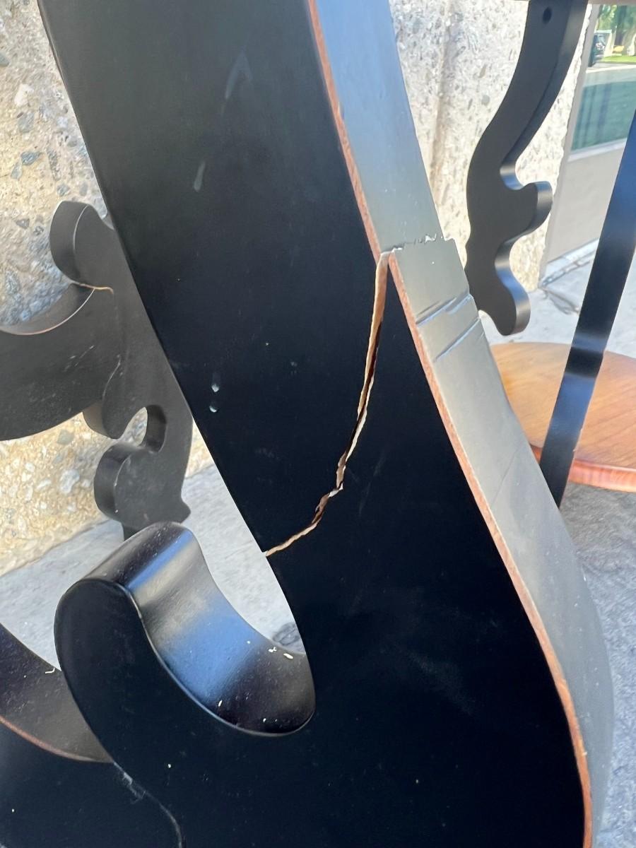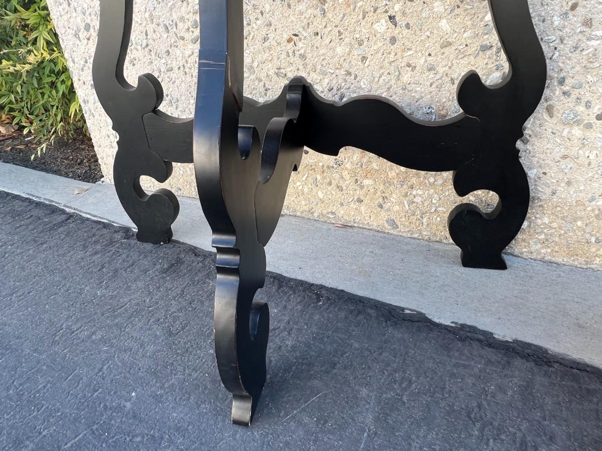 There is a crack to one of the legs of the largest end table, but there is no other significant damage and is in overall fair displayable condition. Check pictures for more details and for sizing.