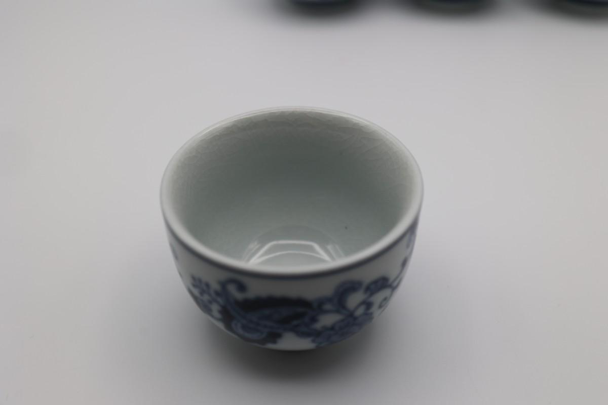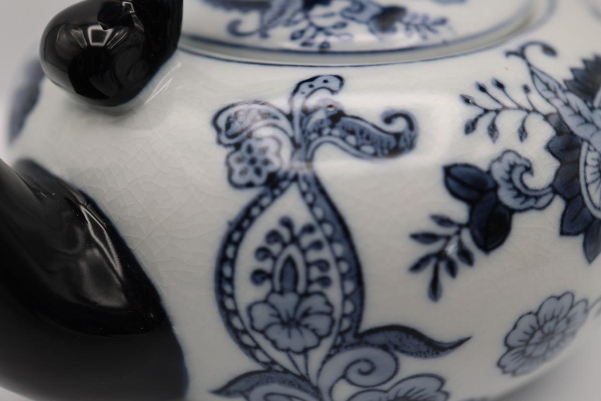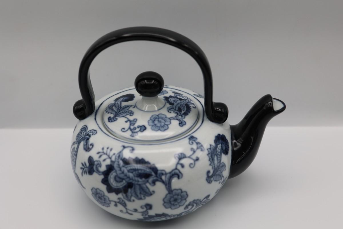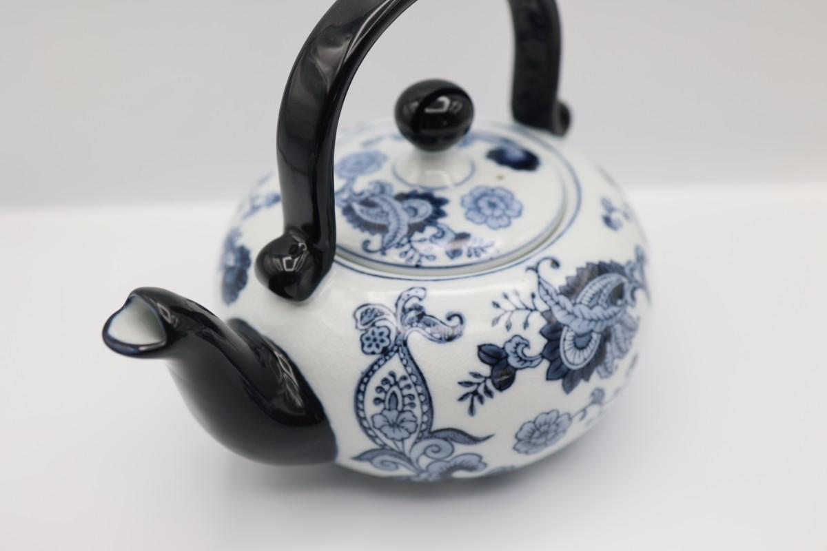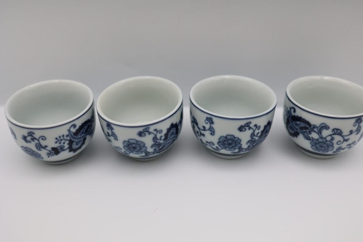 Pier 1 Imports Porcelain Hand Painted White Blue Tea Pot & Four Cups Set