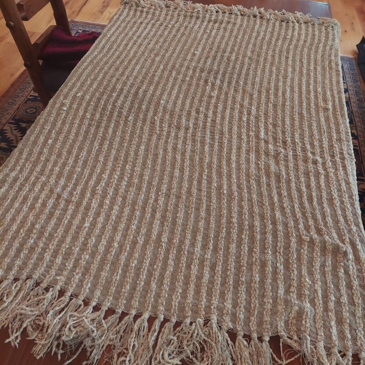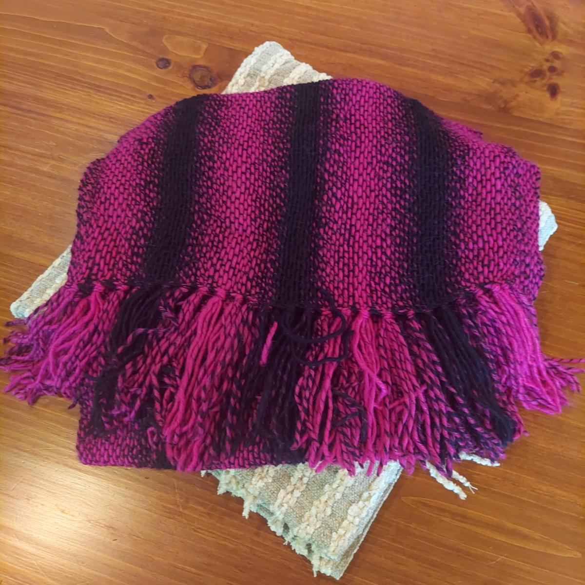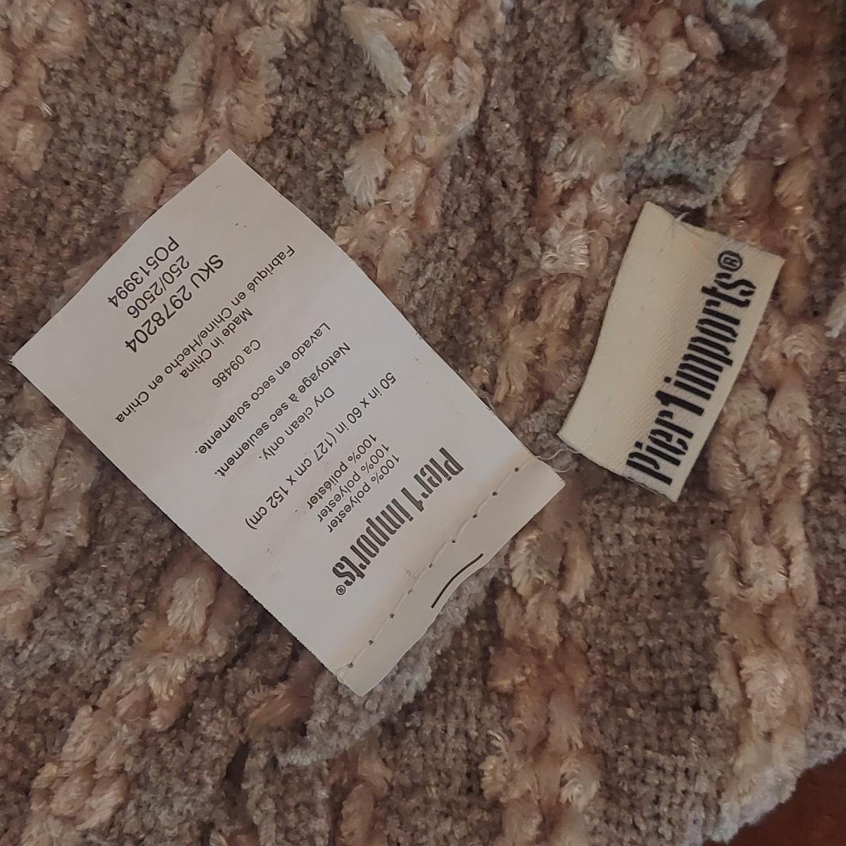 Lot includes a Pier 1 Imports Throw that measures 49” x 65” and has some condition issues. Plus a handmade wrap that measures 18” x 92”. Please see photos for details. Shipping available