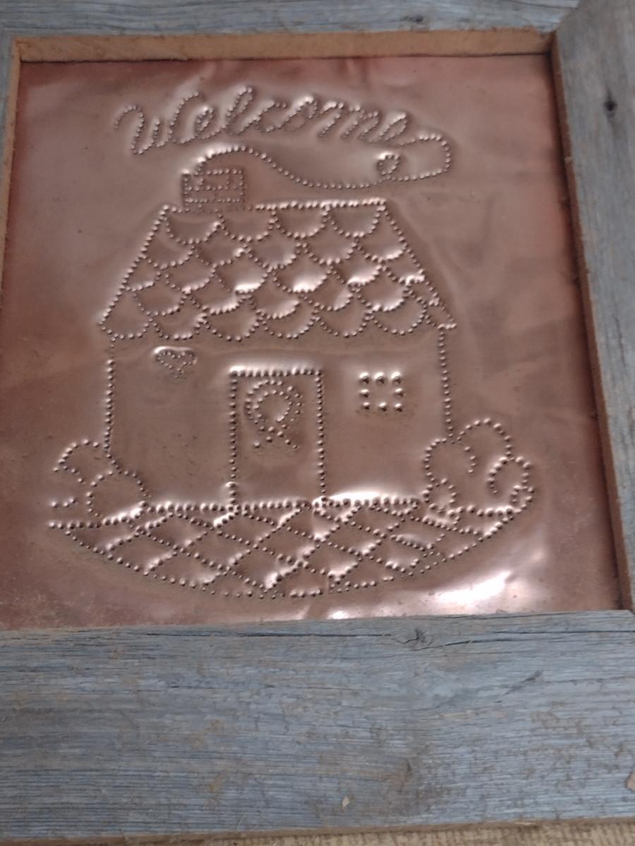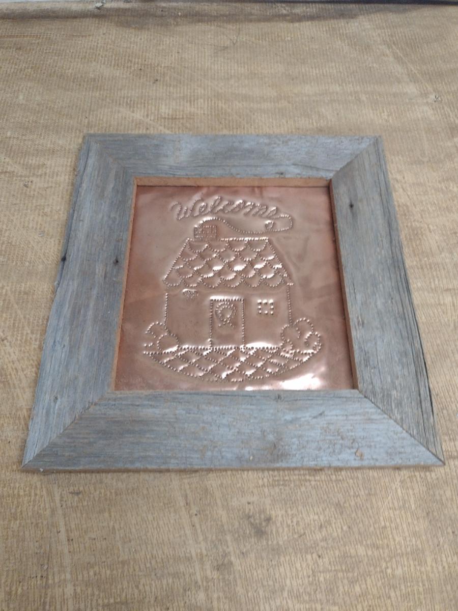 Pierced Copper Welcome Sign in Frame- Approx 16" x 17"