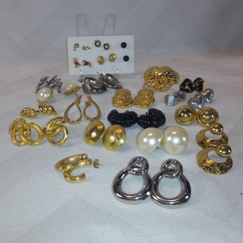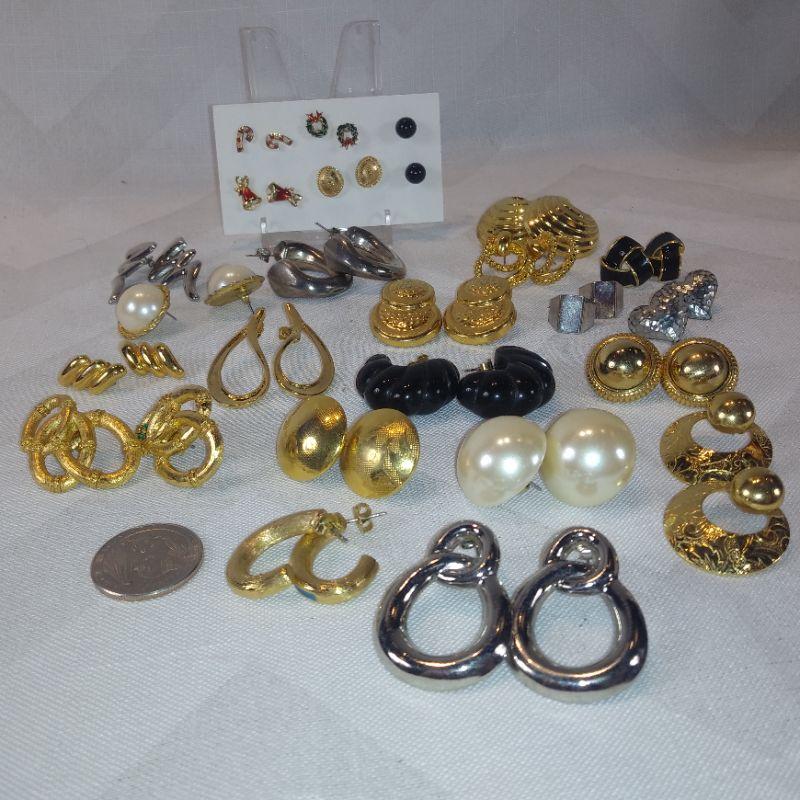 This auction lot is for A Double Dozen of Pierced Earrings. A large collection of 24 pairs of pierced earrings. All in in very good condition - one set looks to be sterling but it is unmarked.