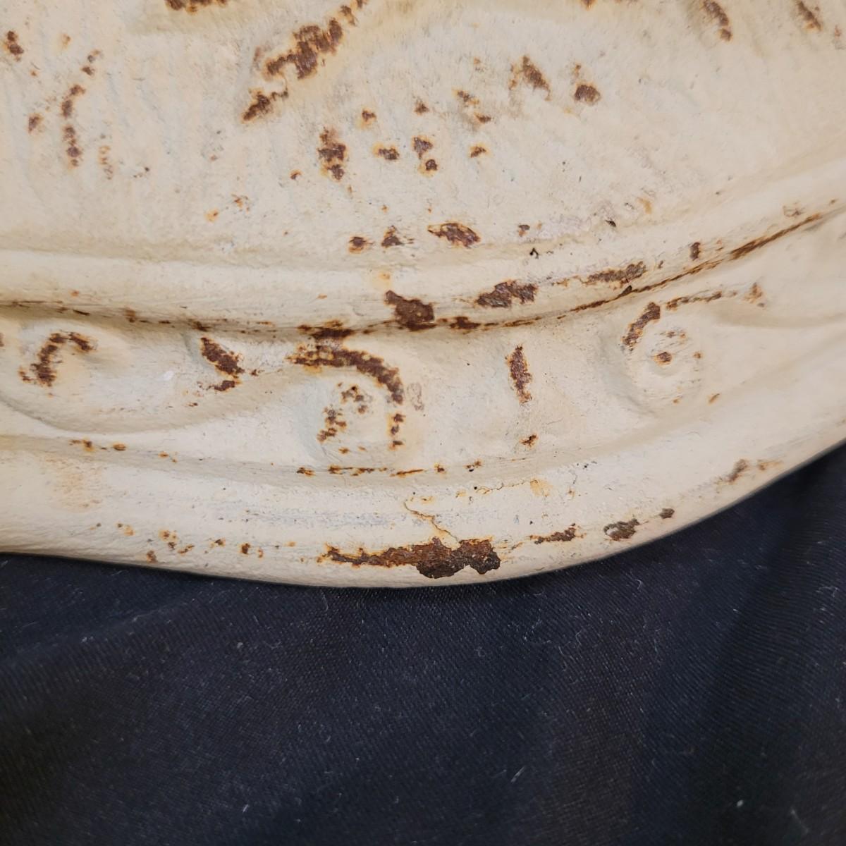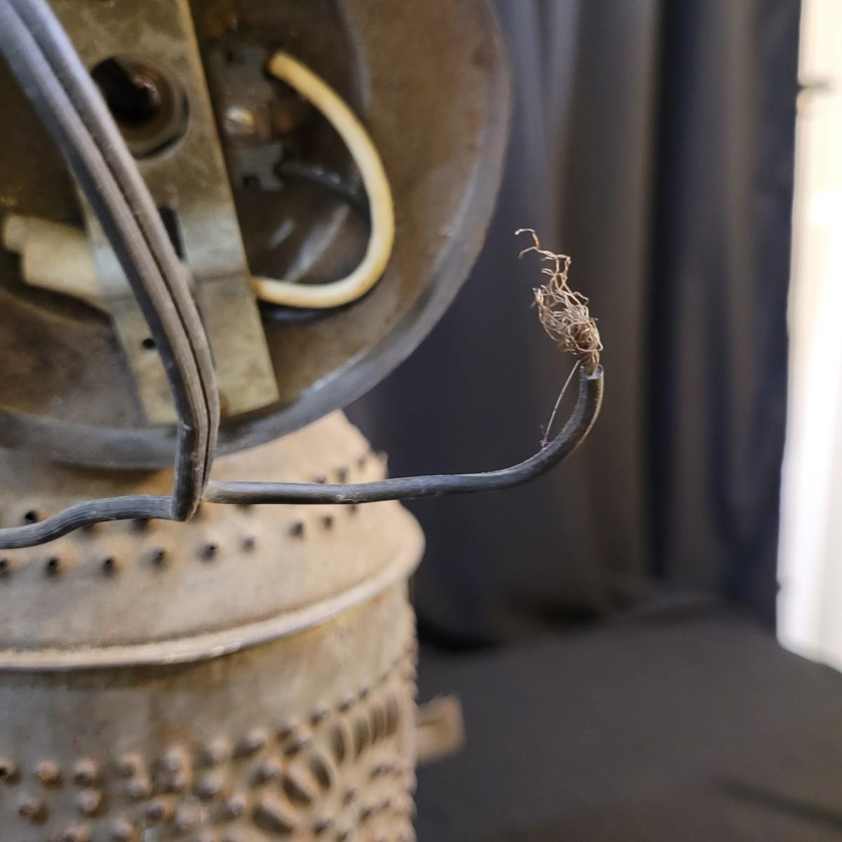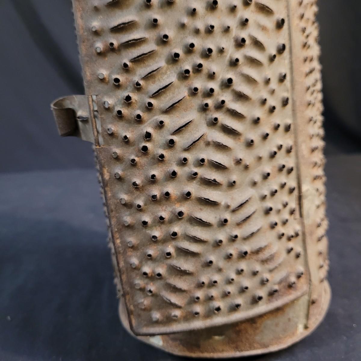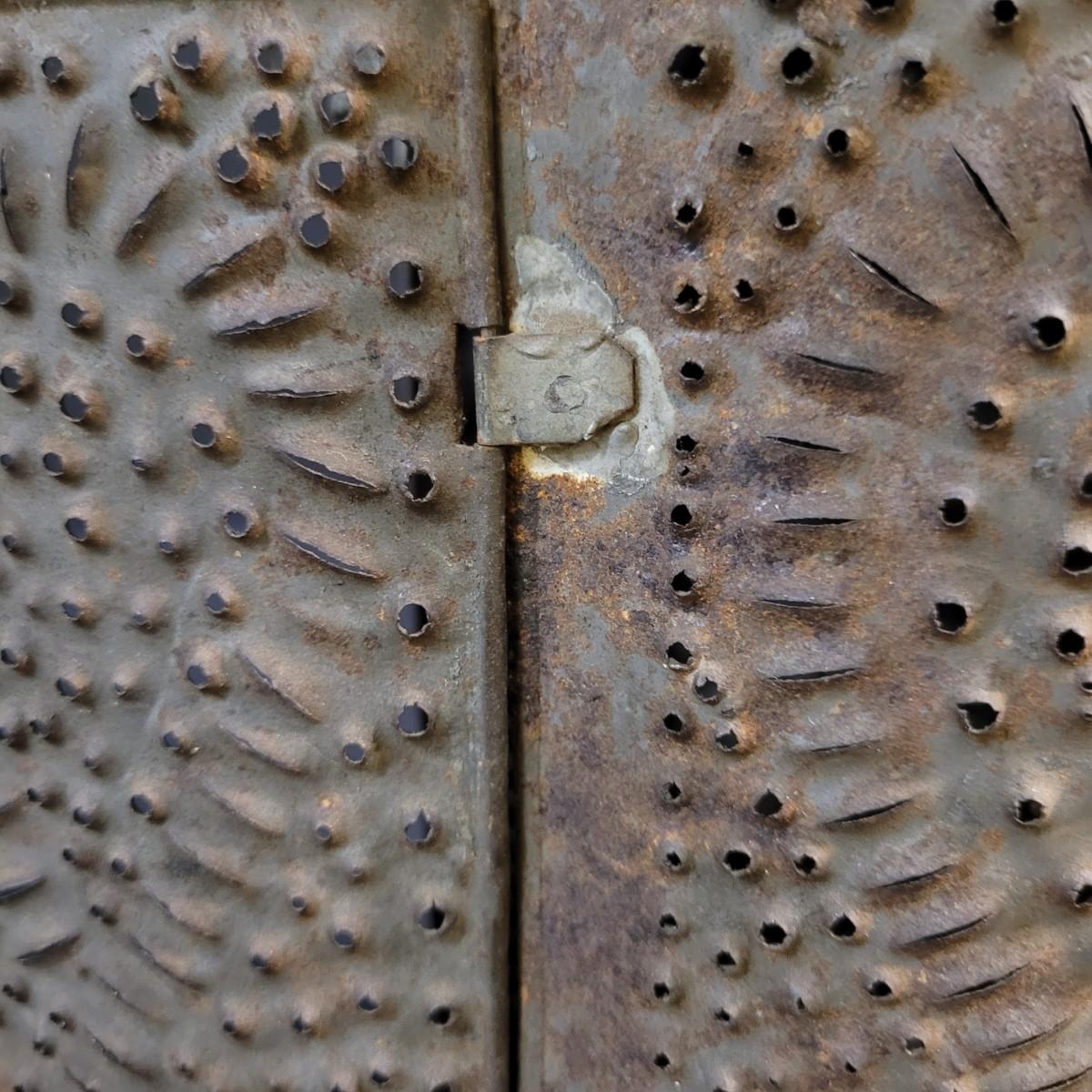 Tin lantern has moderate rusting throughout but body and hinges are intact. Unable to test electrical equipment. Rooster doorstop is heavy for size, with some paint chipping (see photos). Lantern measures approximately 6"DIA x14.5"H. Shipping available.