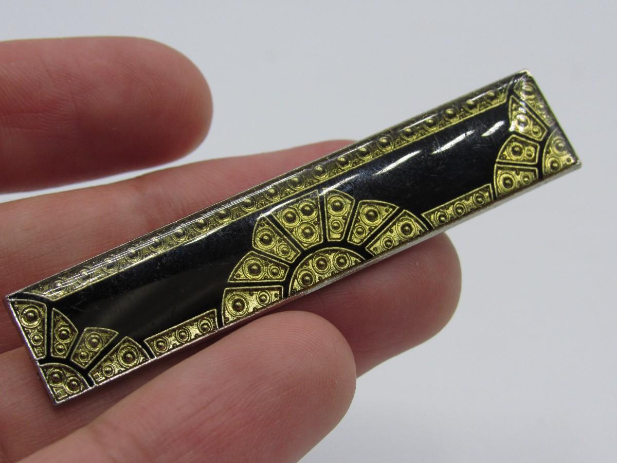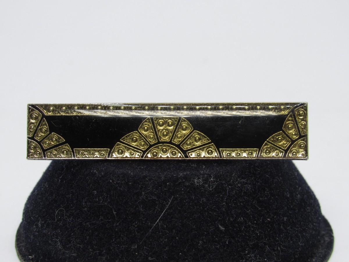 Pierre Bex Style Bar Pin or Brooch ““ Art Deco style ““ 1970s ““ French rectangular black gold