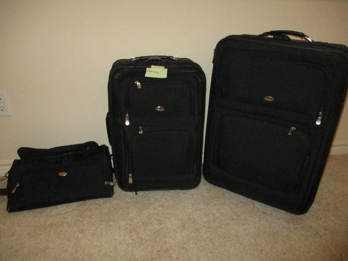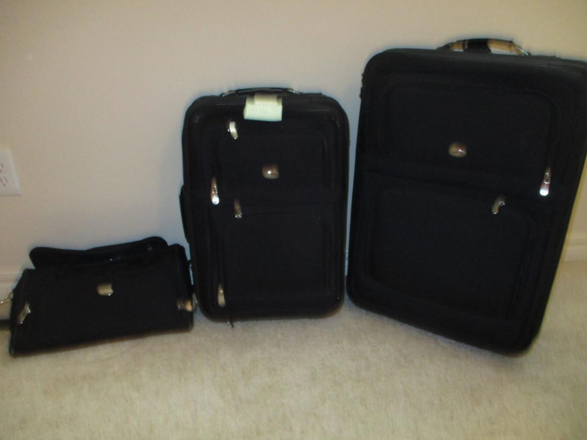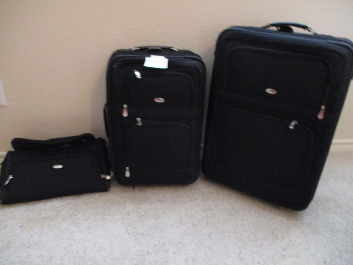 3pc luggage. Minor marks. 1 carryon. 1 toiletry luggage. One luggage rack