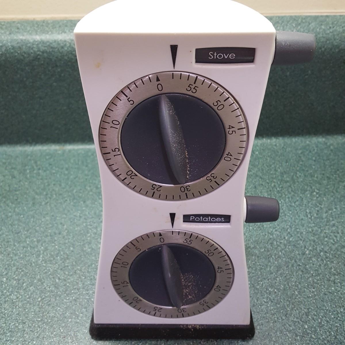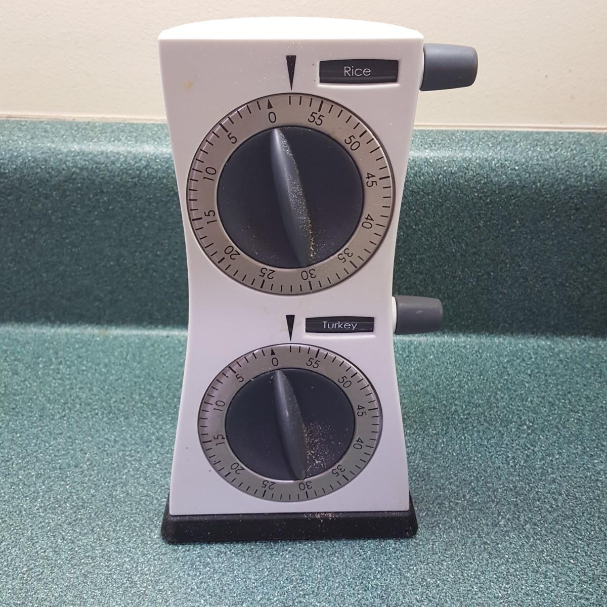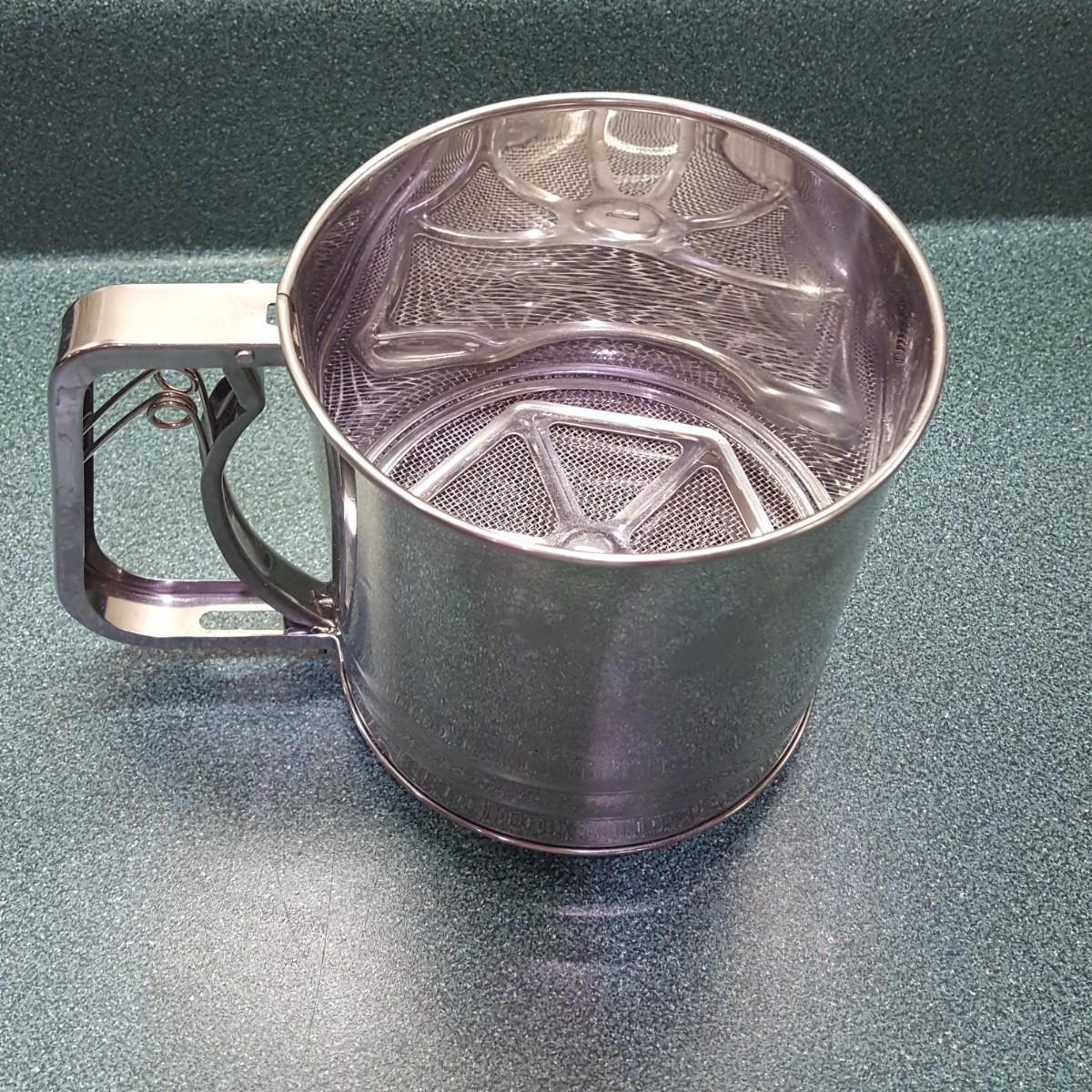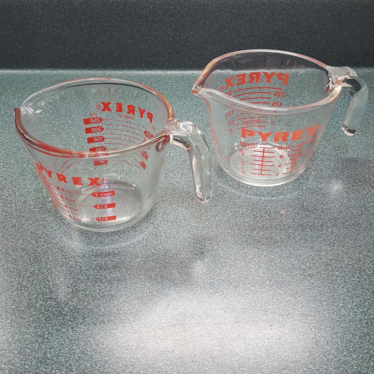 This lot contains 1 white ceramic pie pan (10 inches x 3 inches), 5 Anchor brand small clear bowls (4 inches x 2 inches), 2 Pyrex 1 cup measuring cups, 1 metal shifter, 1 vintage, wooden looking rolling pin, 5 metal, stacking mixing bowls, 1, 2 tiered timer by Progressive, and 1 glass Pyrex pie pan (9.5 inches).. All pieces appear to be in good condition. The rolling pin has some wear on it, see pictures for details.