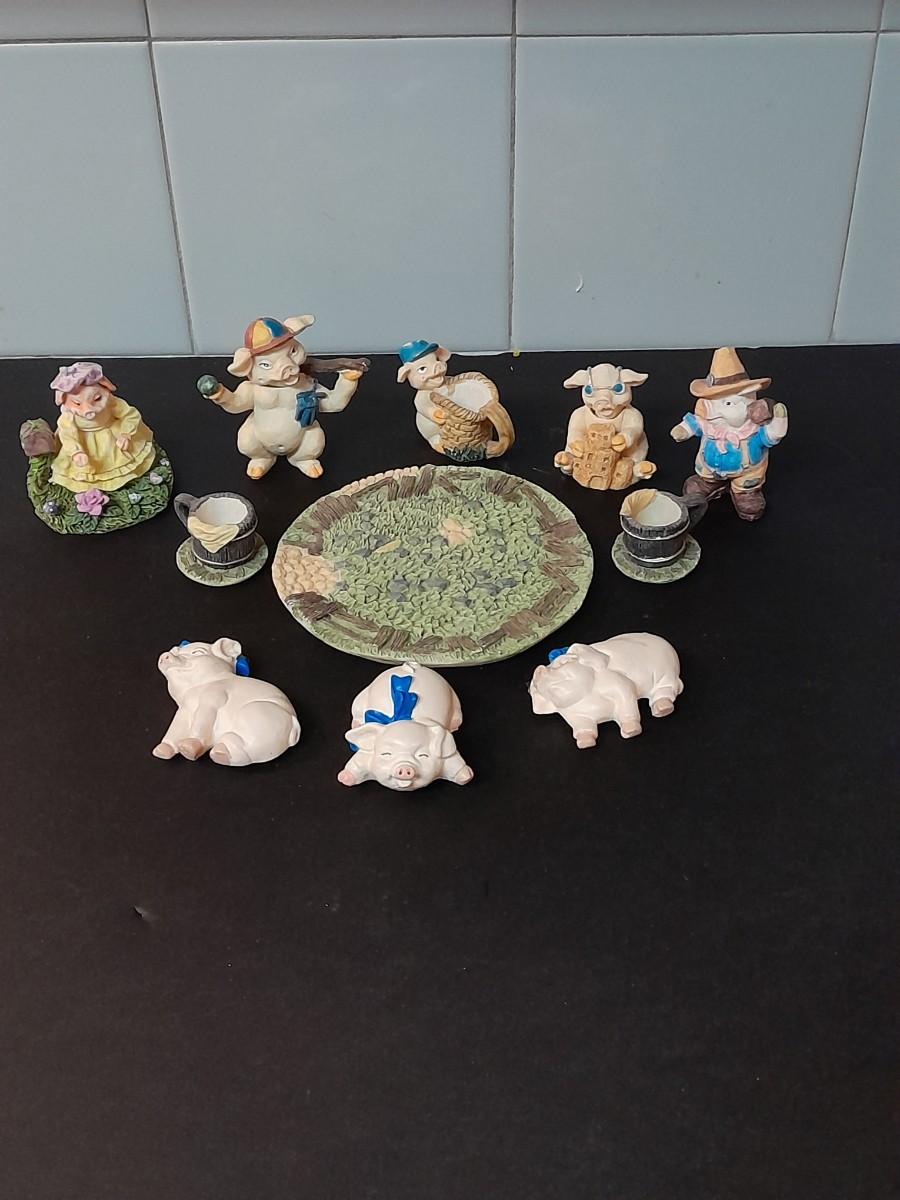 Pig Collectibles and Three pig Refrigerator magnets