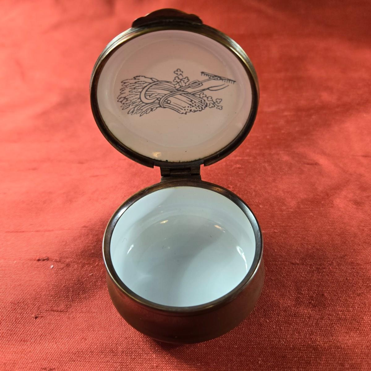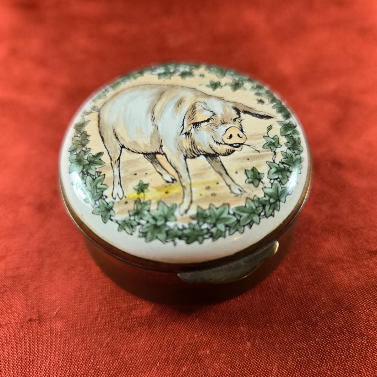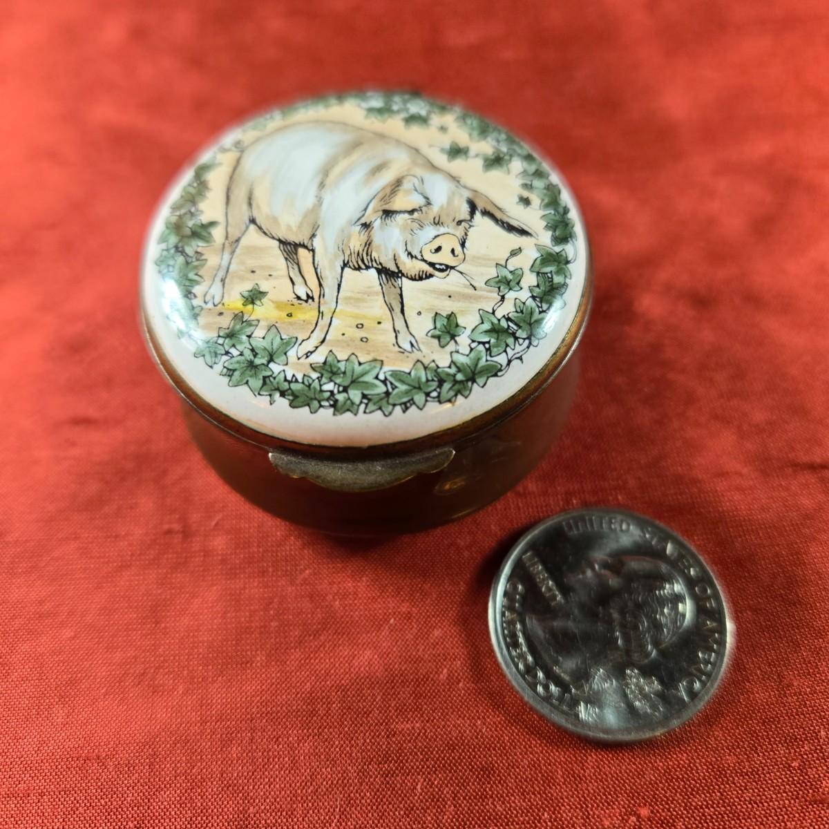 This auction lot is for a Pig Limoges Box - England. This is a fun Limoges Box by Crummles & Co - Made in England. The happy pig will surely make the collector smile. It is about 2.75 inches in diameter.