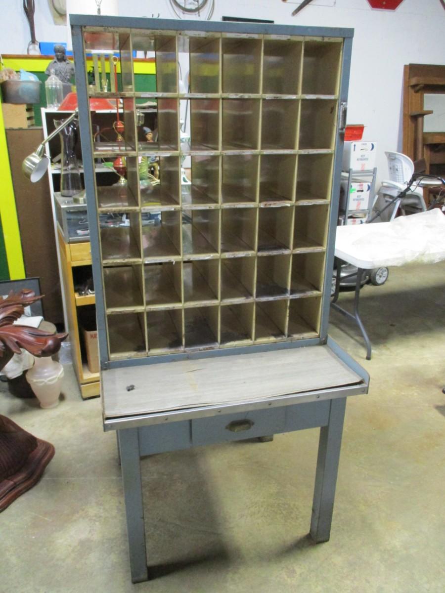 Vintage Metal Pigeonhole Postal Desk and Sorter Stack