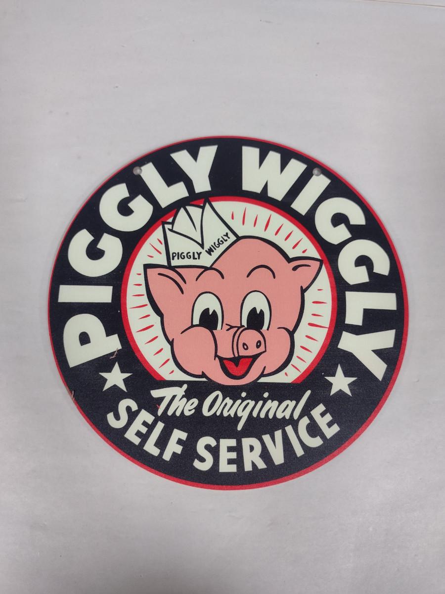 'Piggly Wiggly' Reproduction Wooden Sign- Approx 7 3/4" in Diameter