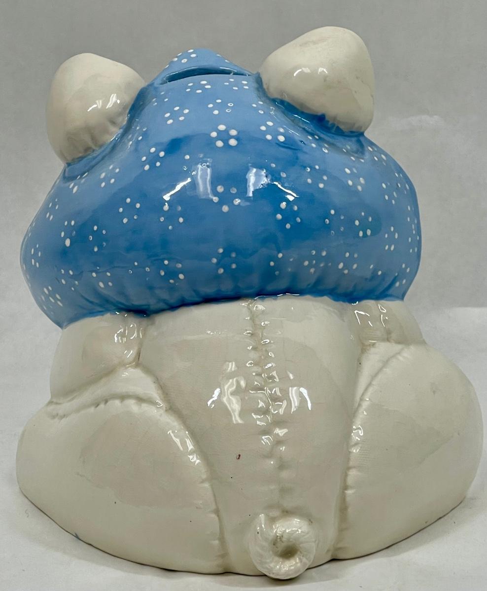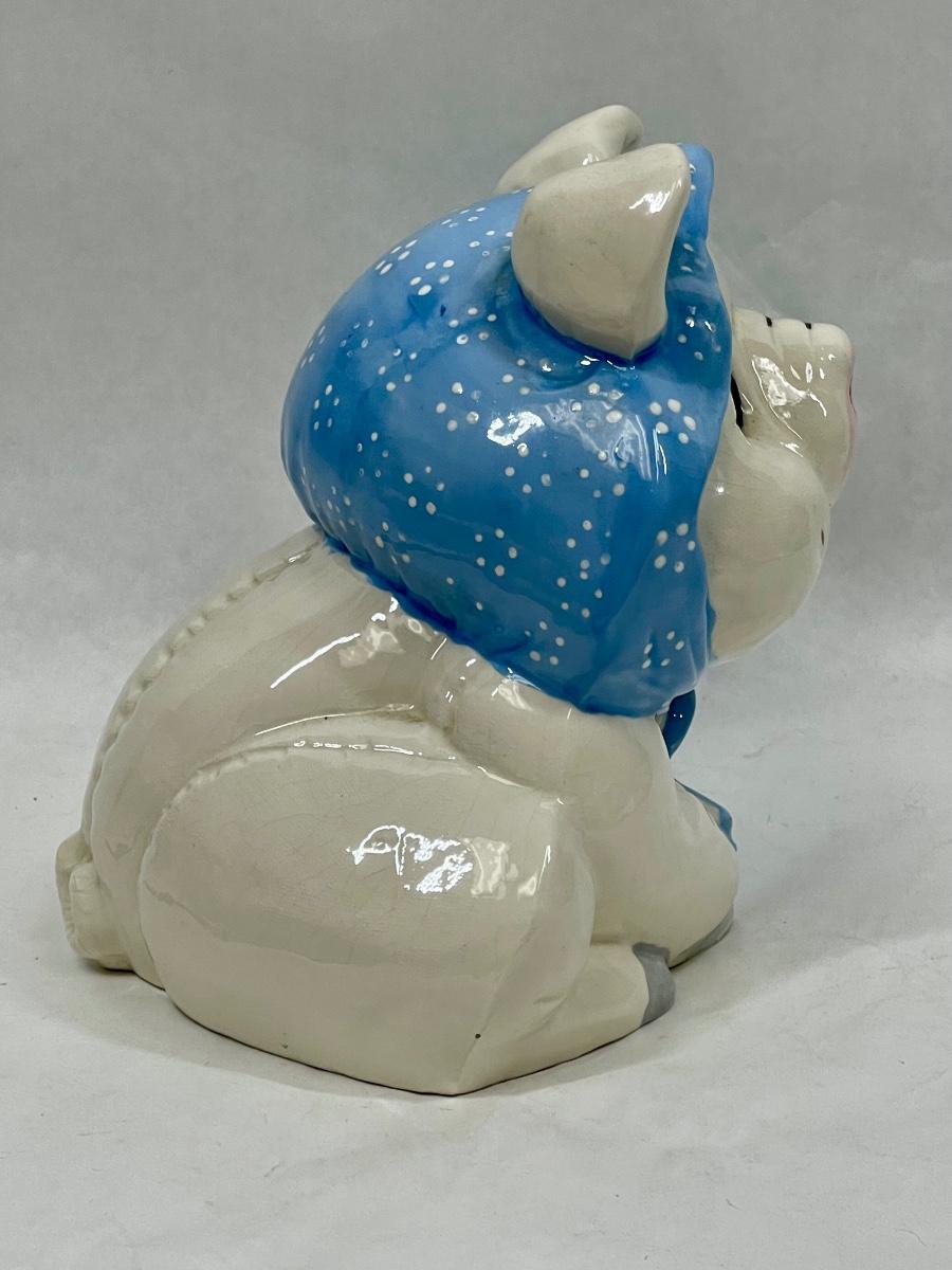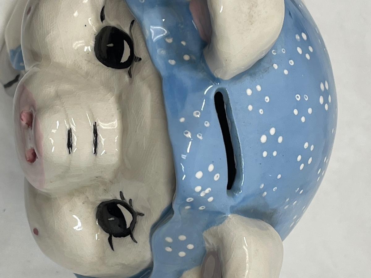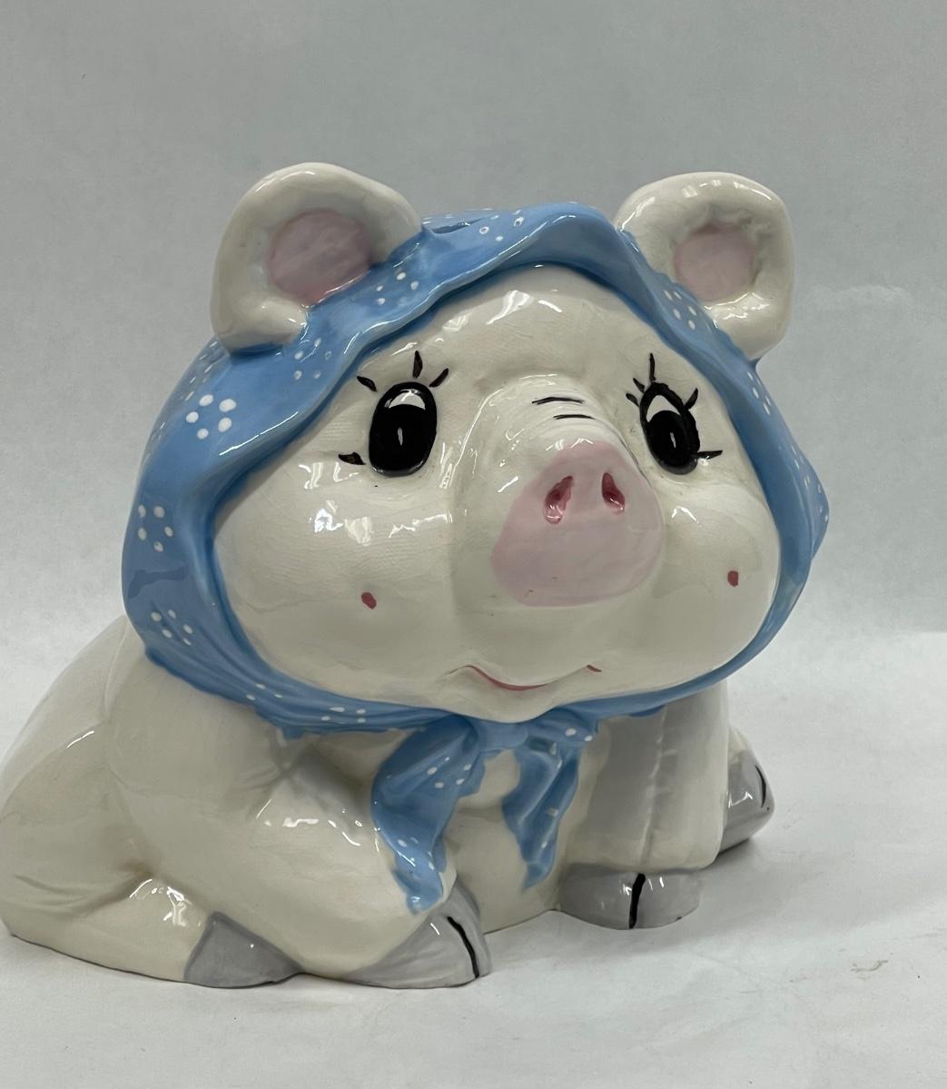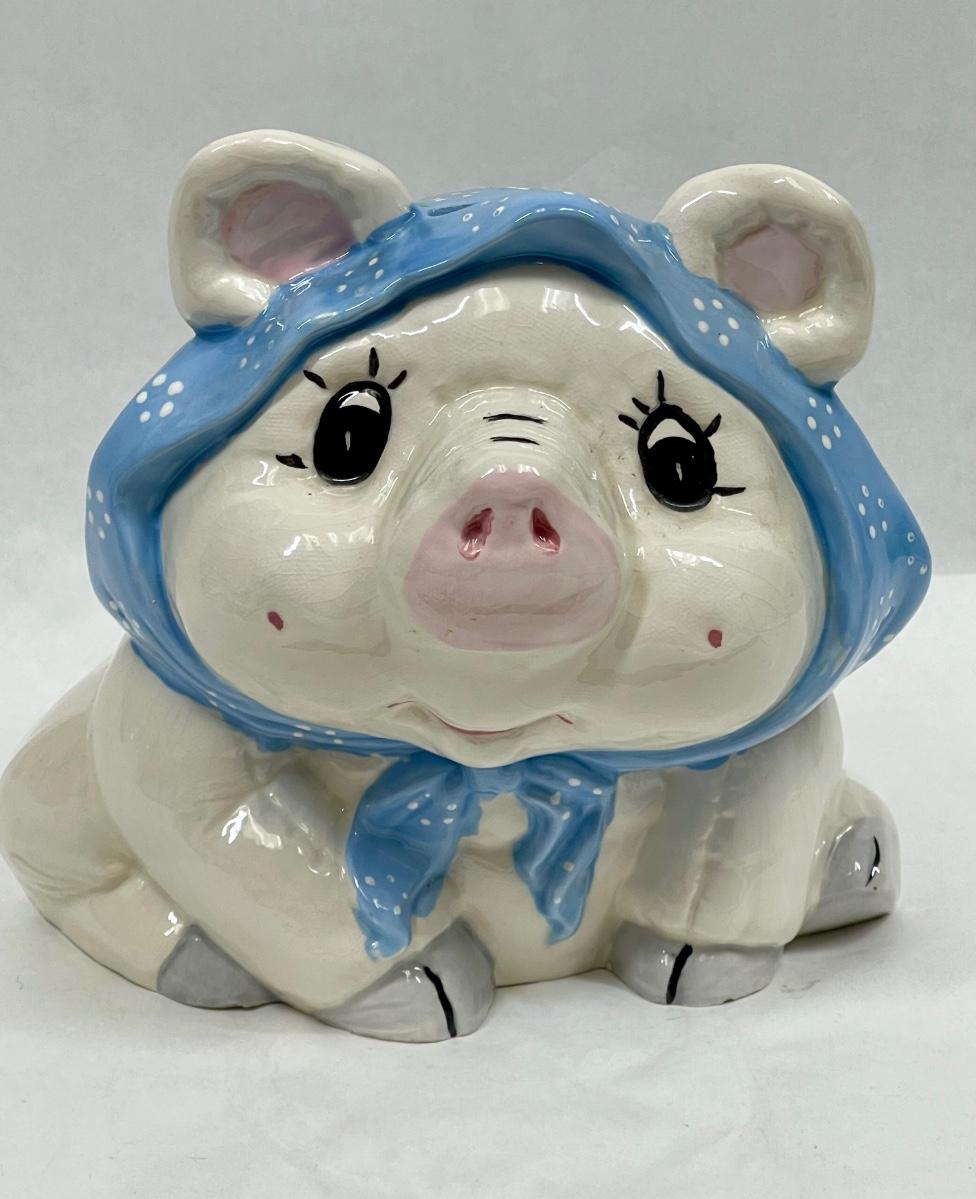 Vintage Ceramic Piggy Bank Pig wearing blue scarf