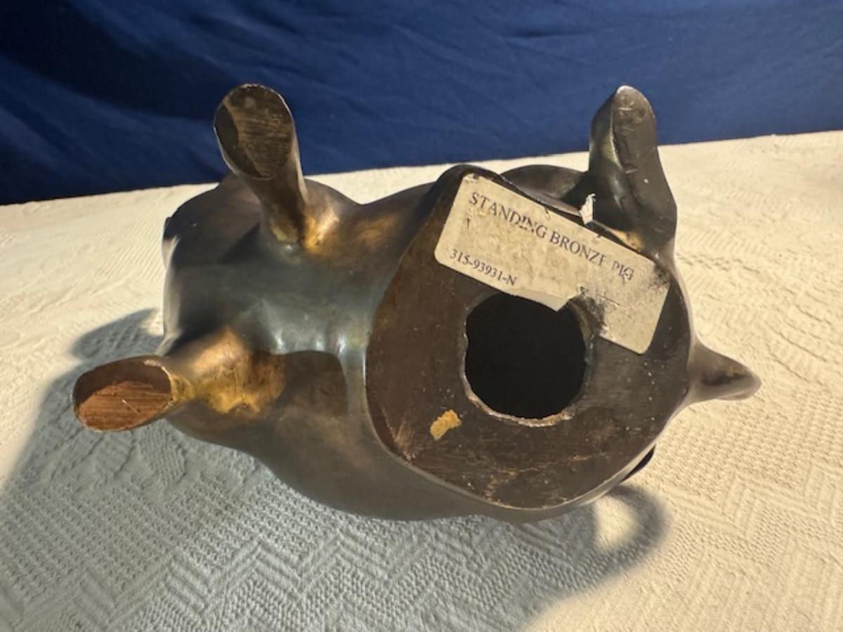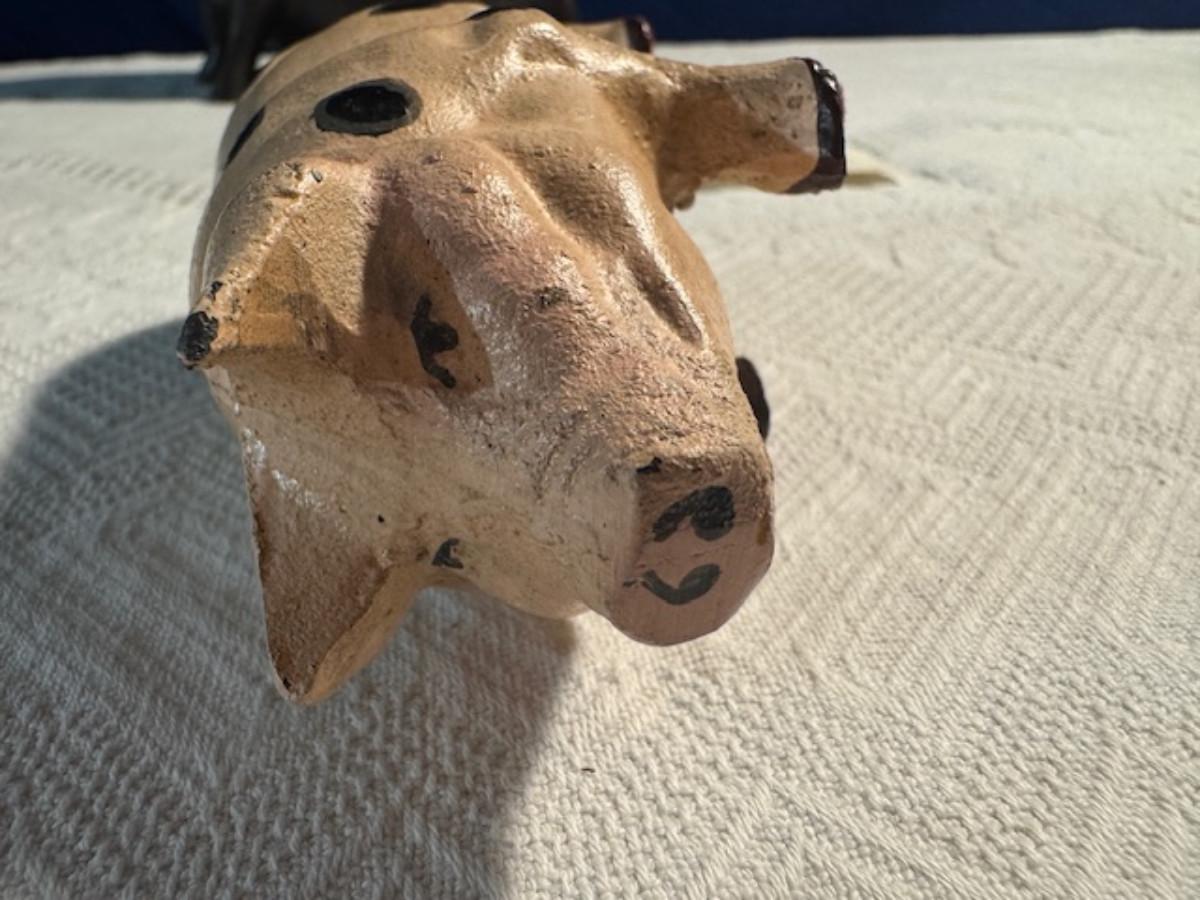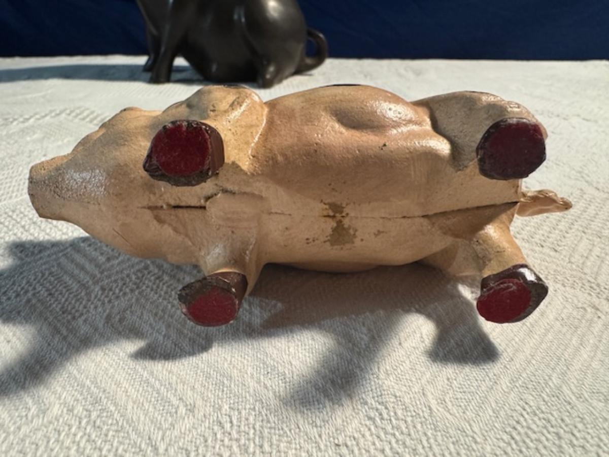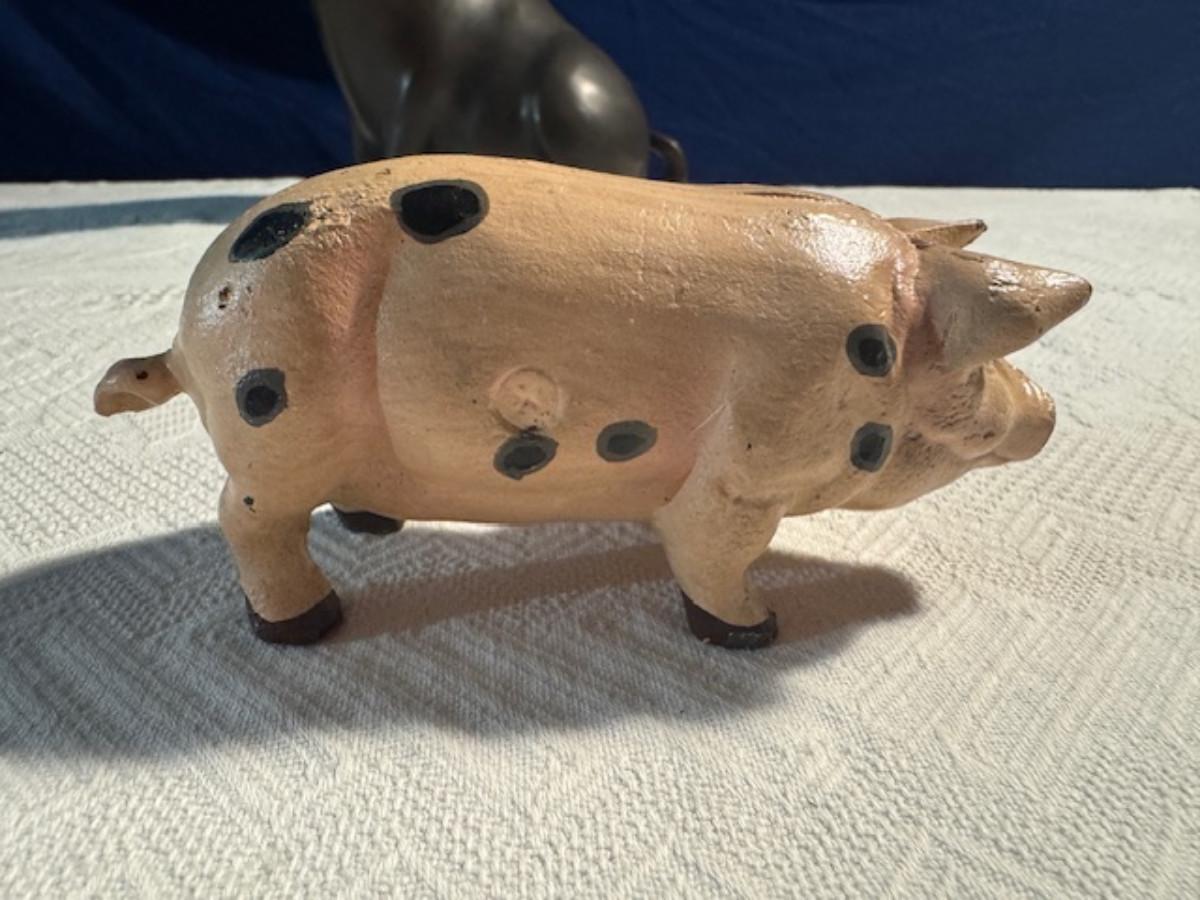 Bronze pig 9 1/4" x 8" x 4.5", cast iron pig 3", Stone Pig 1 3/4"