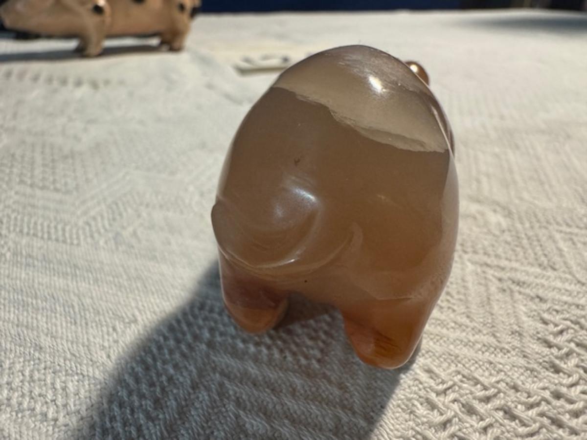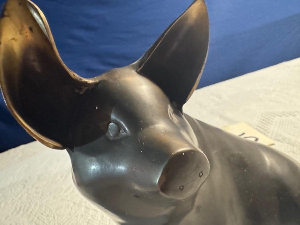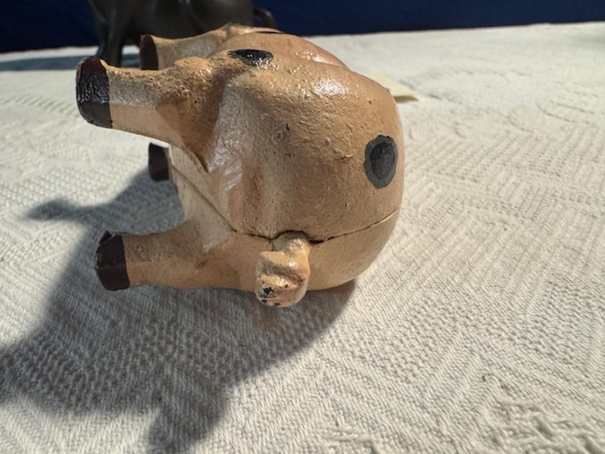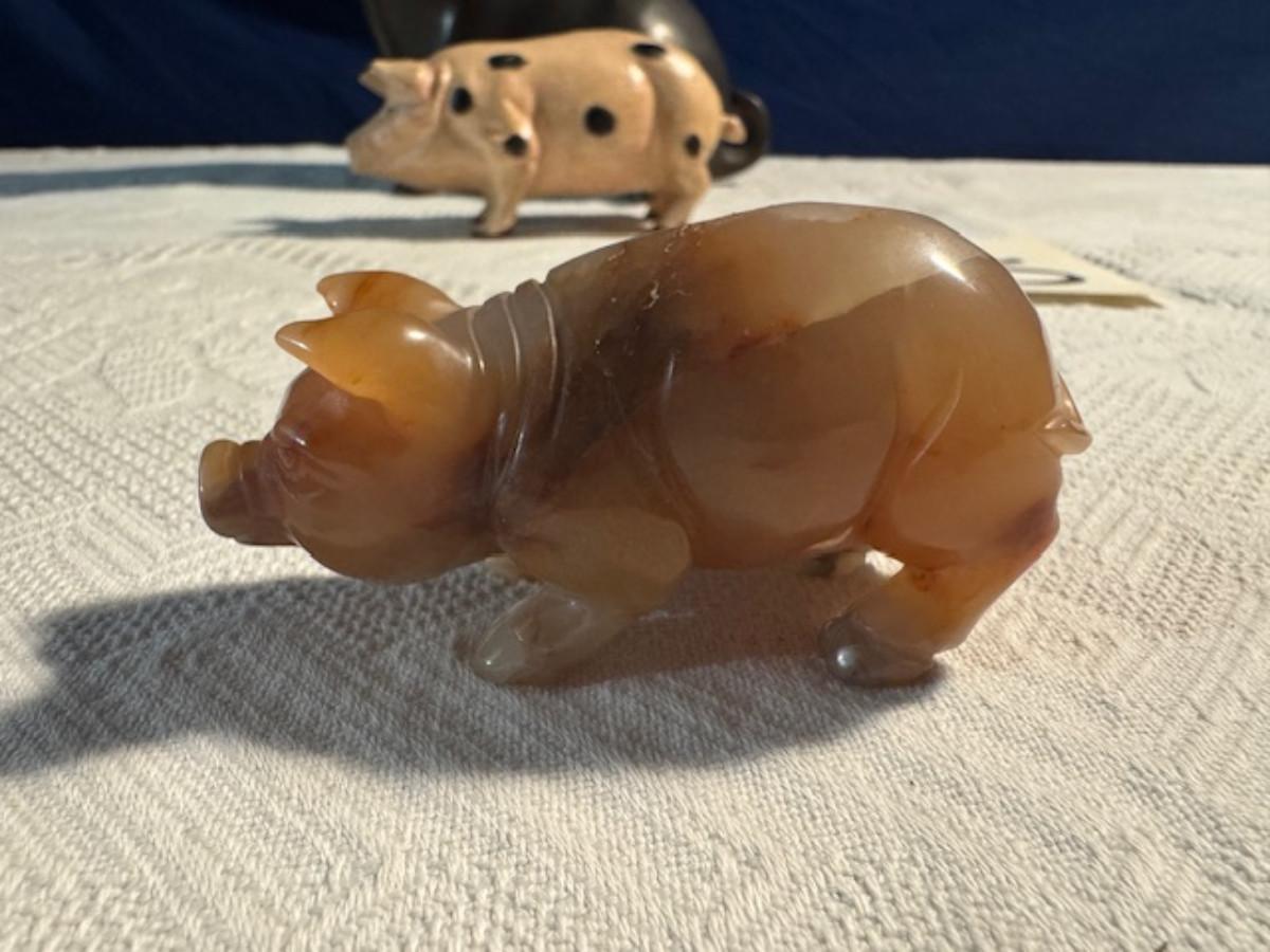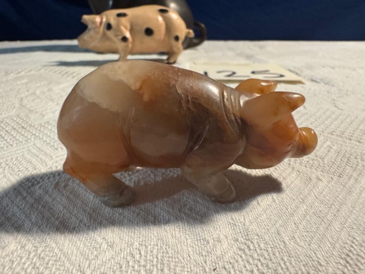 Bronze pig 9 1/4" x 8" x 4.5", cast iron pig 3", Stone Pig 1 3/4"