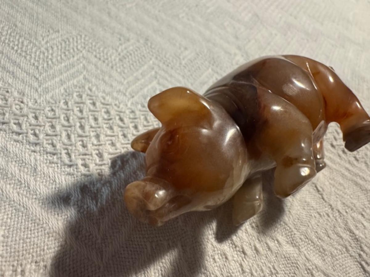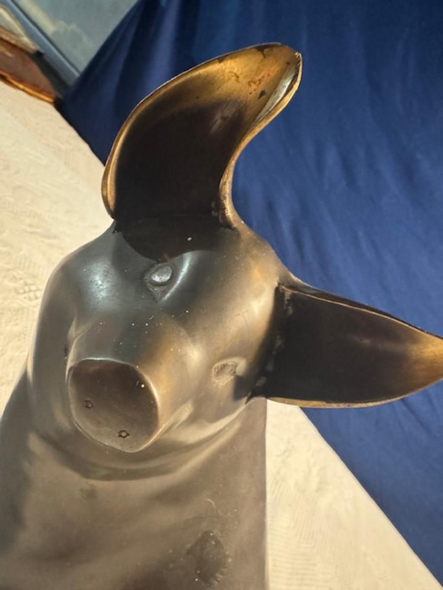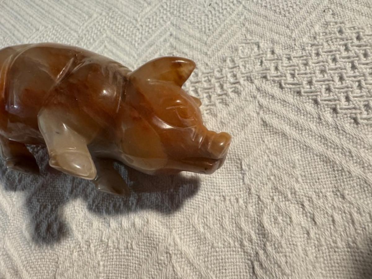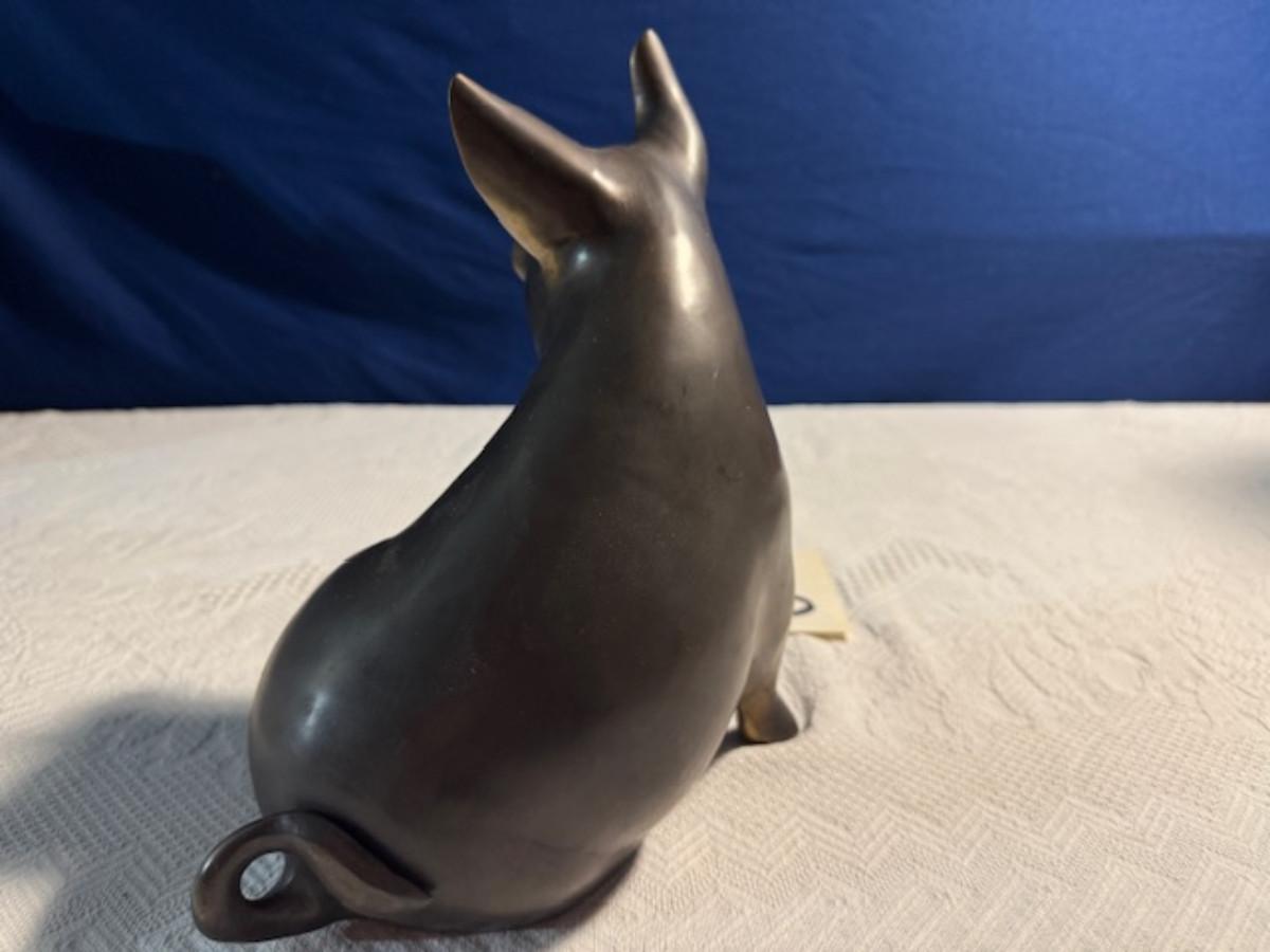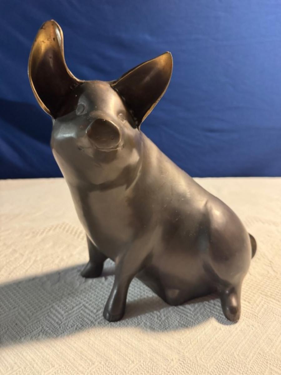 Bronze pig 9 1/4" x 8" x 4.5", cast iron pig 3", Stone Pig 1 3/4"