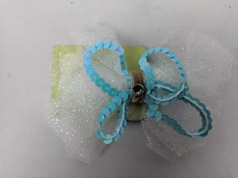 Pig's n Ponies Custom Bow Blue/White/Rhinestone - New