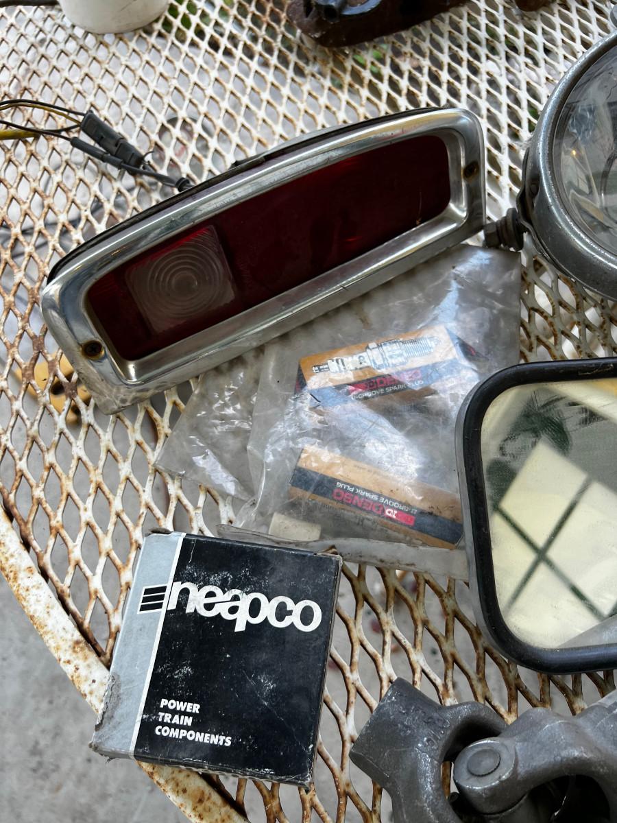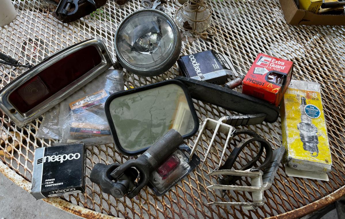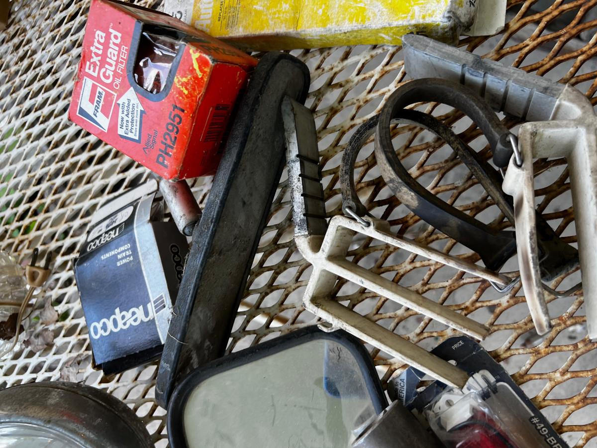Pile O Car Parts; U-joint, Oil Filter, Mirrors