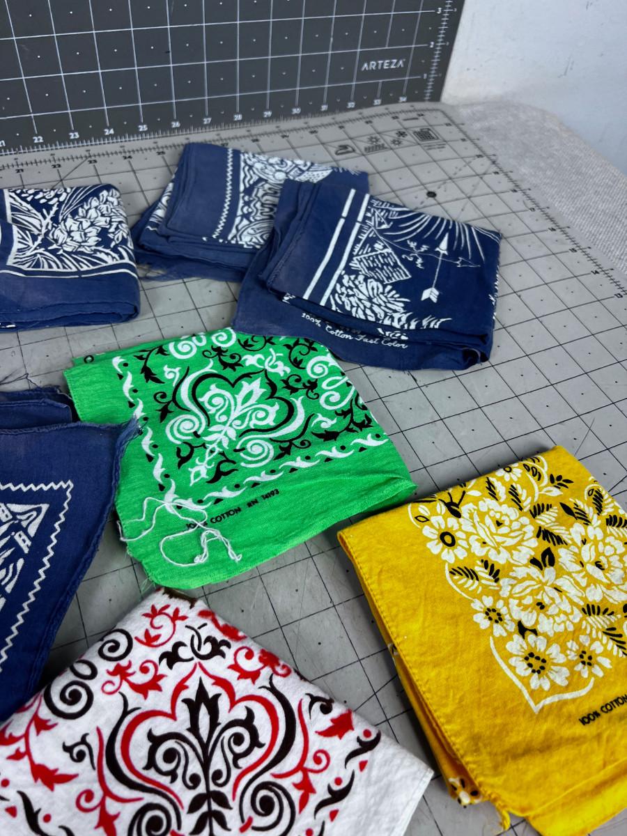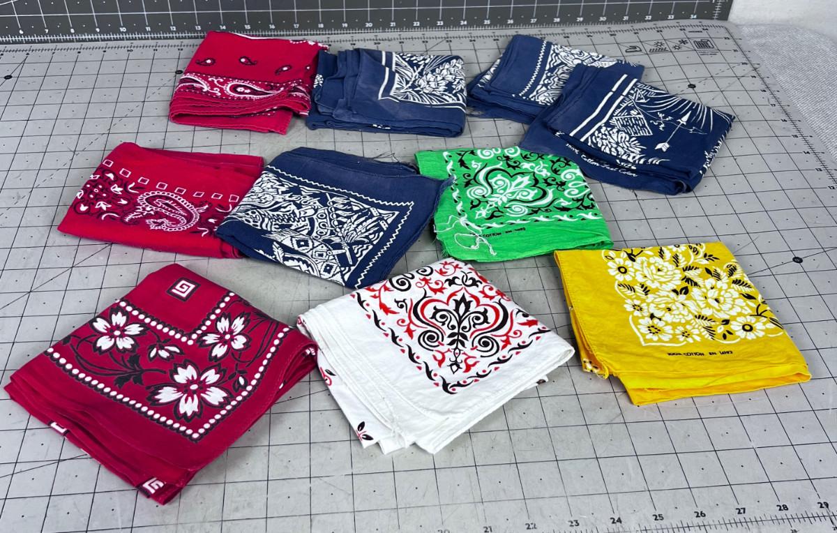 Pile of (10) Real VINTAGE  Neckerchiefs / Bandanas