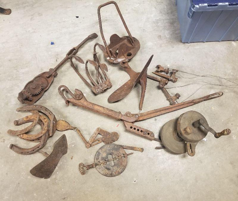 Pile Of Antique & Viintage Rusty Metal Tools & Such - Great Yard Art - #65-A
