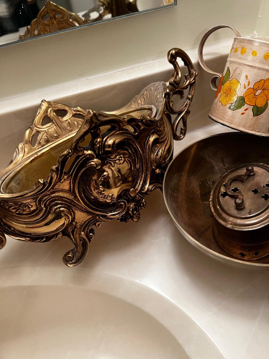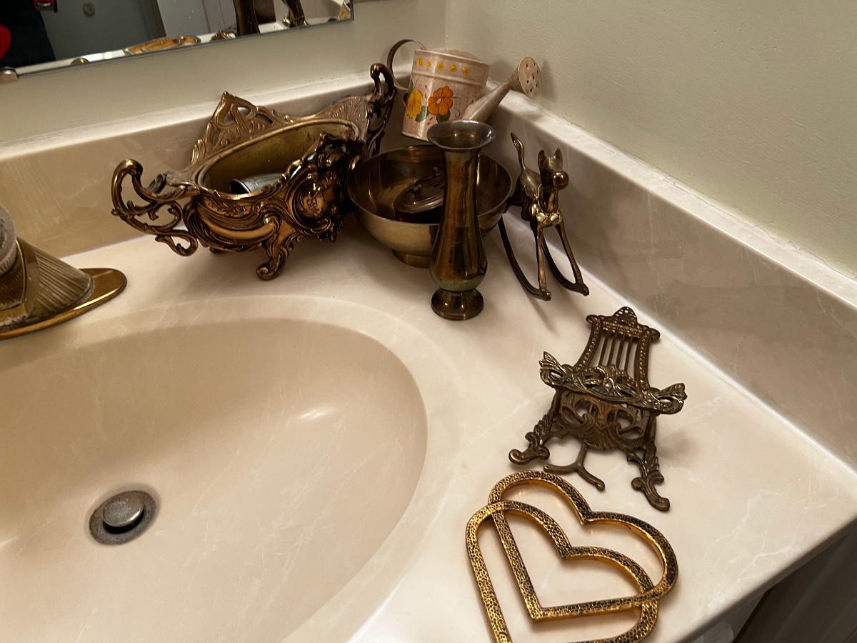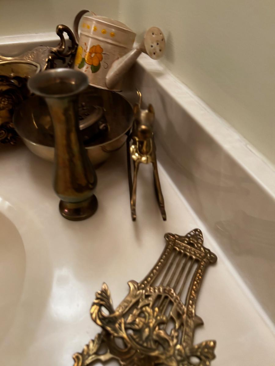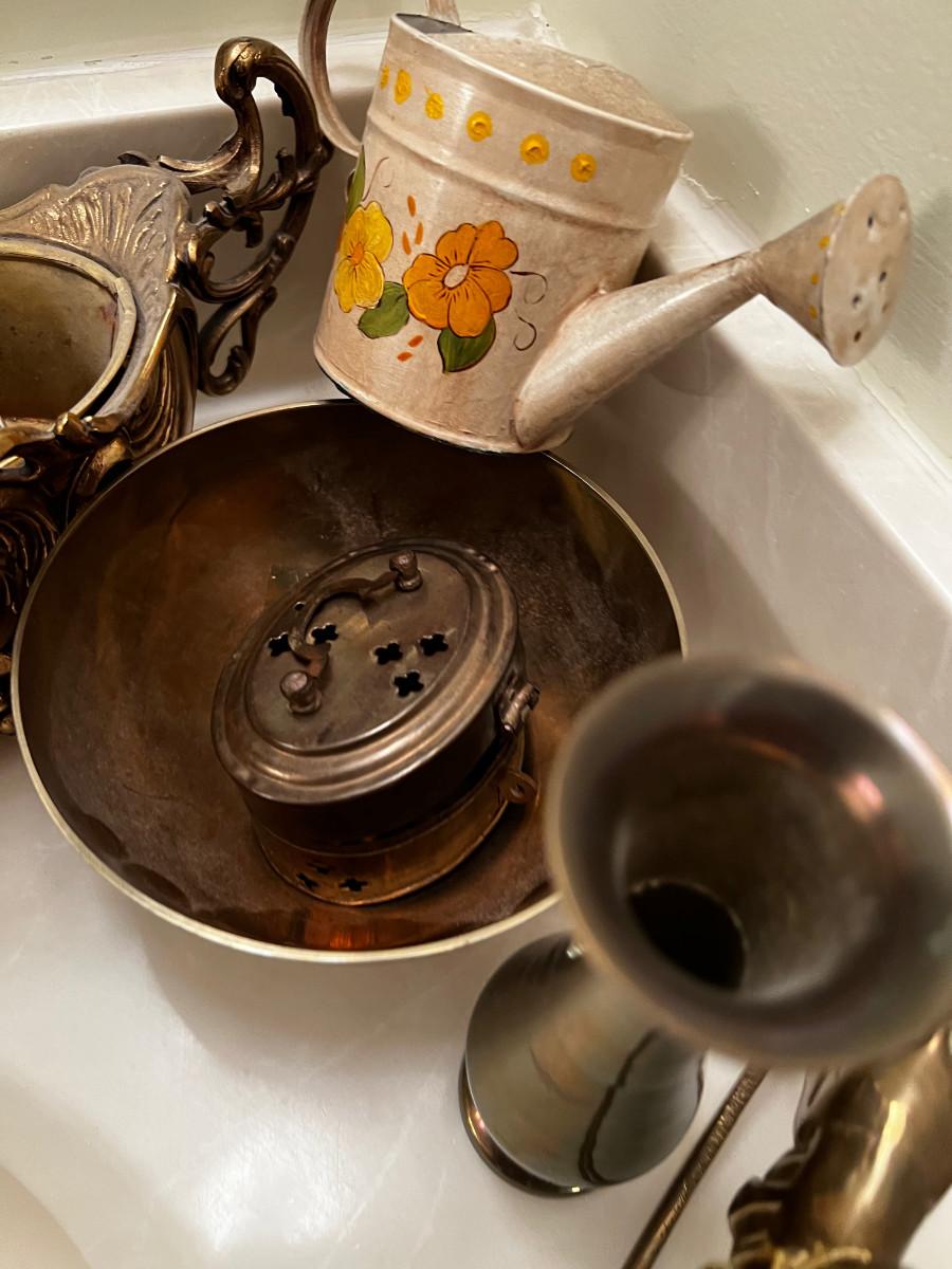 Pile of Brass; Planter, Easel, Rocking Horse, Trivet