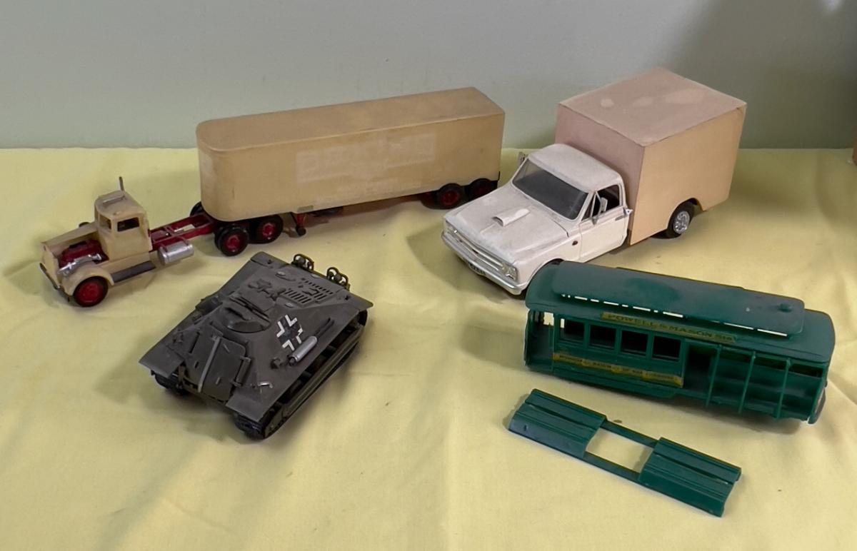 Pile of Built Plastic; Trucks, Trolley and Tanks.