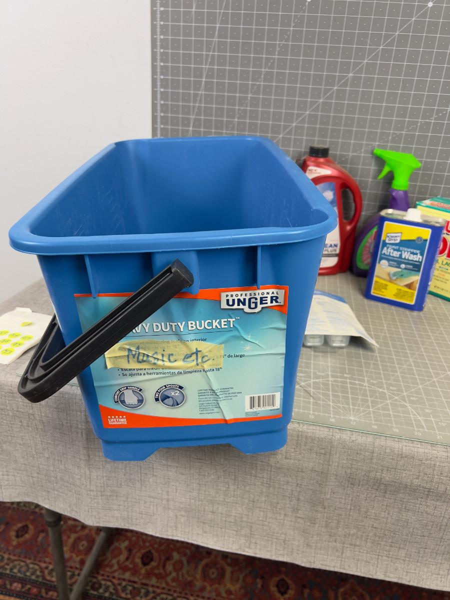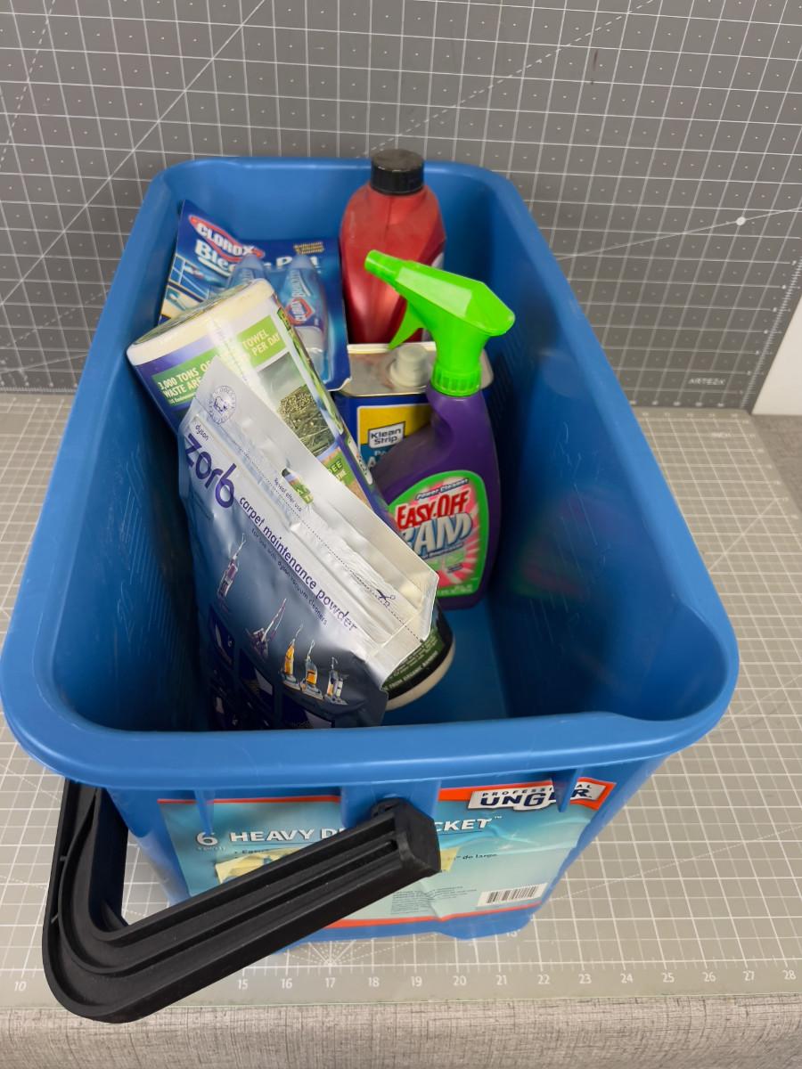 Pile of Cleaning Products in a Heavy Duty Bucket