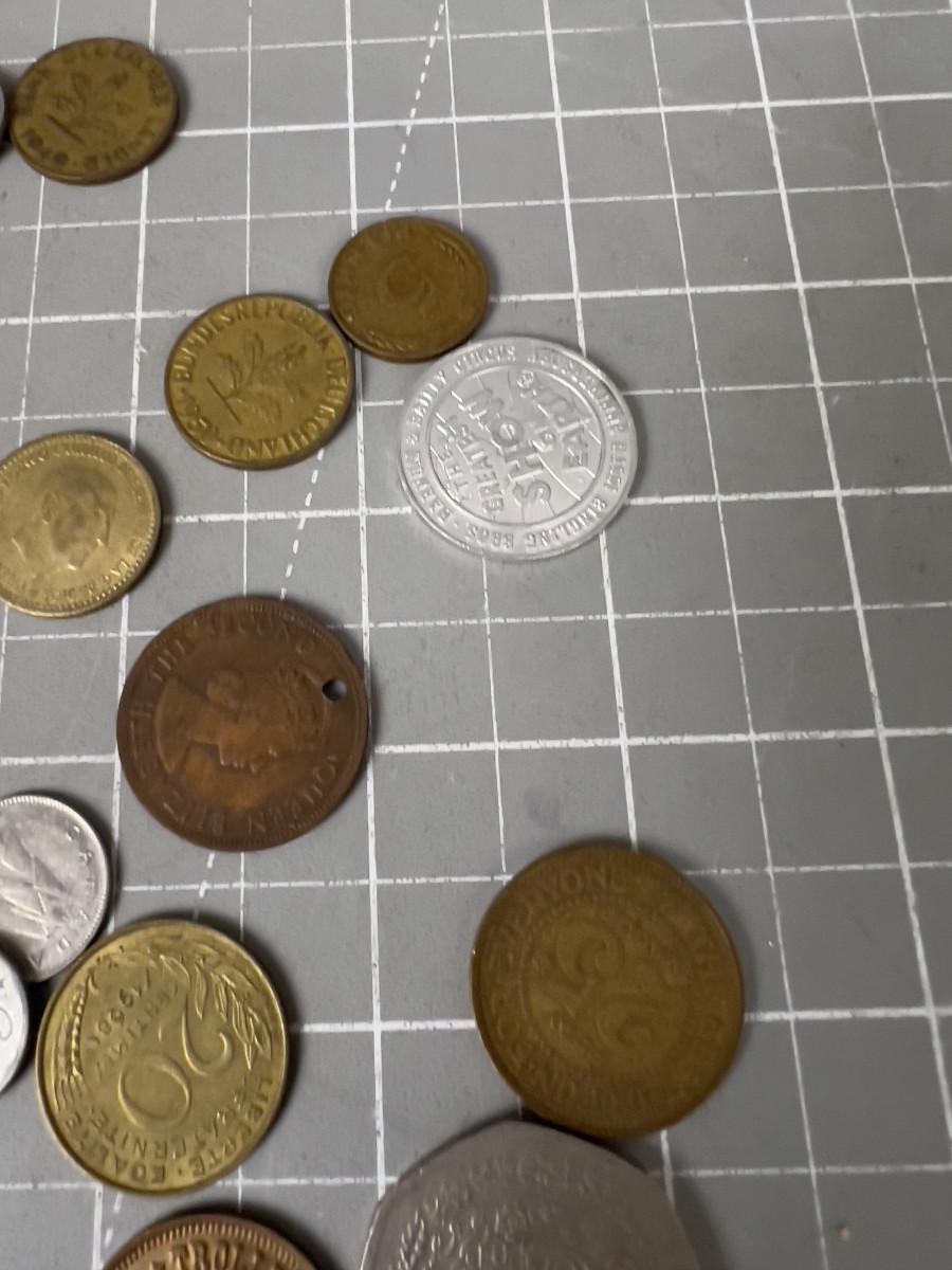Pile of Foreign  Coin Plus Tokens