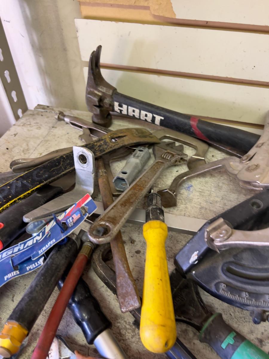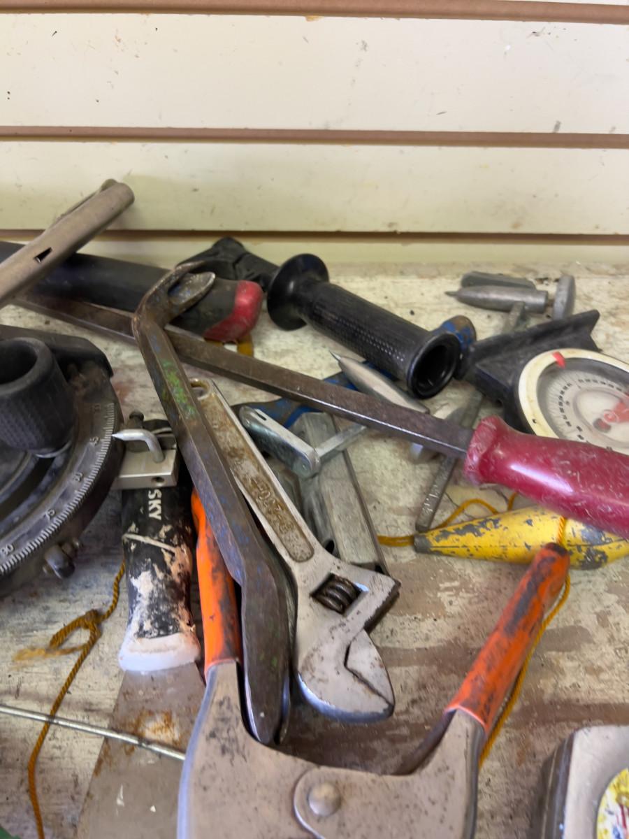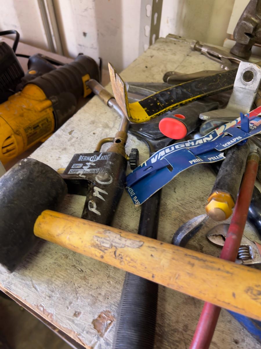 Pile of Hand Tools; Hammer, Torch and Pry Bar
