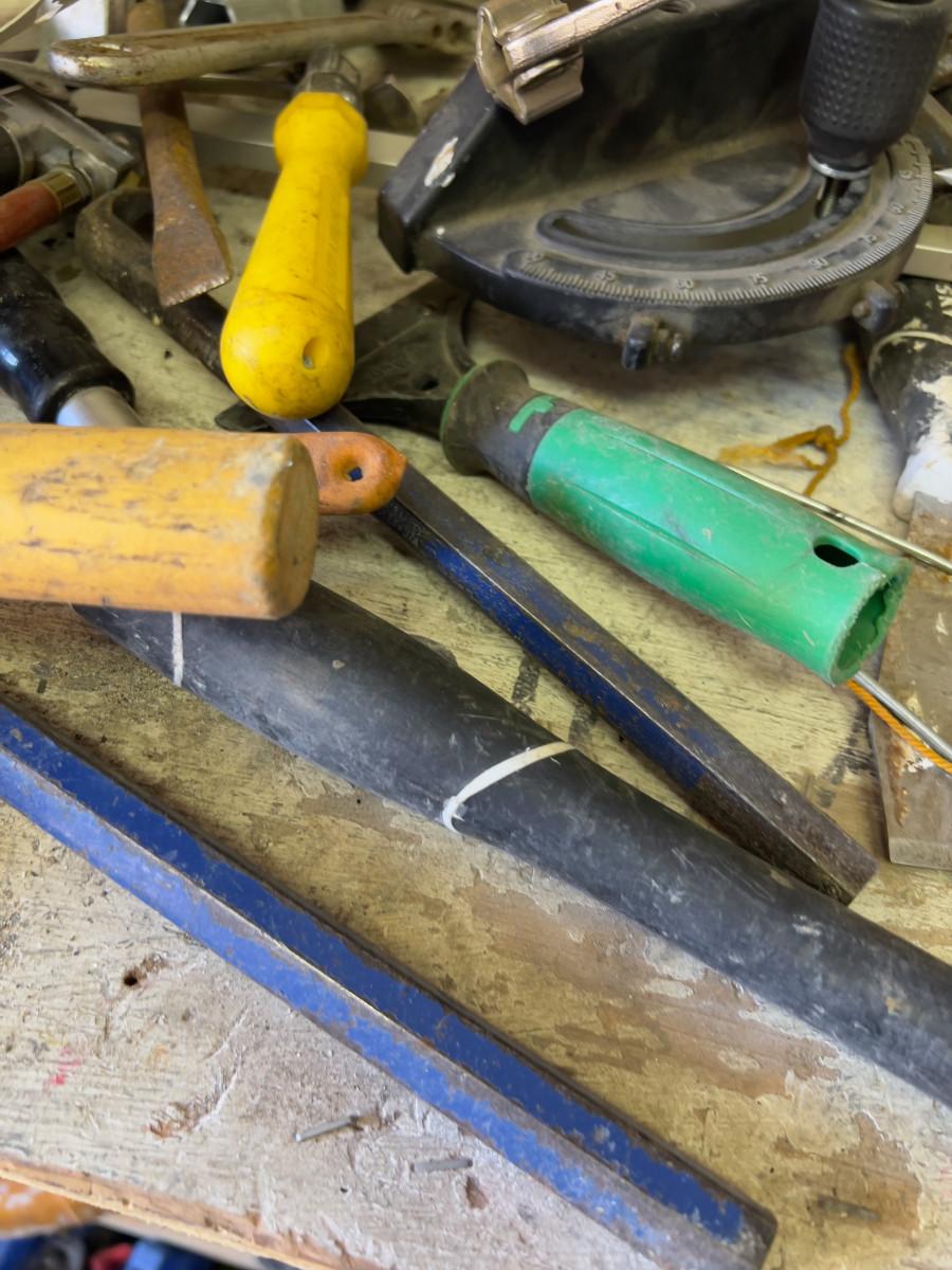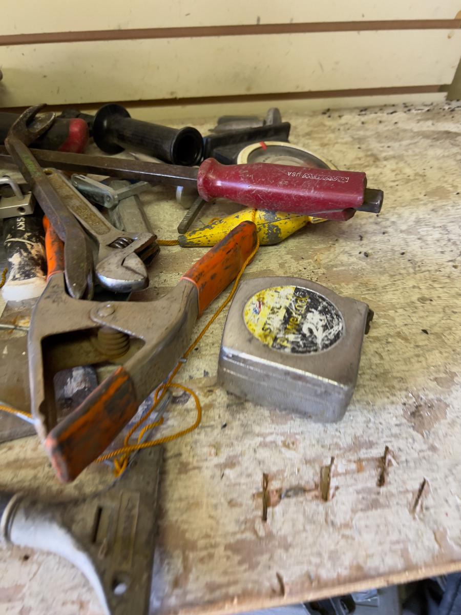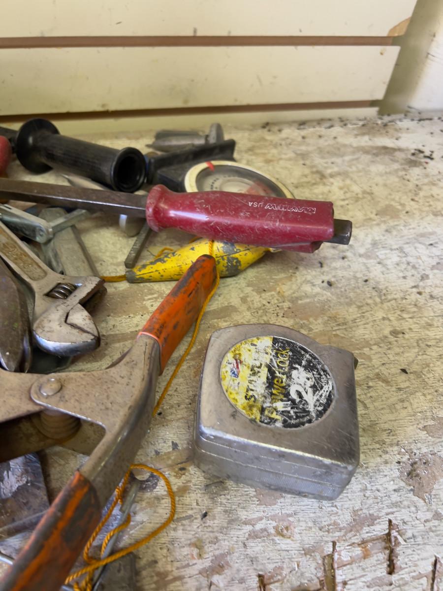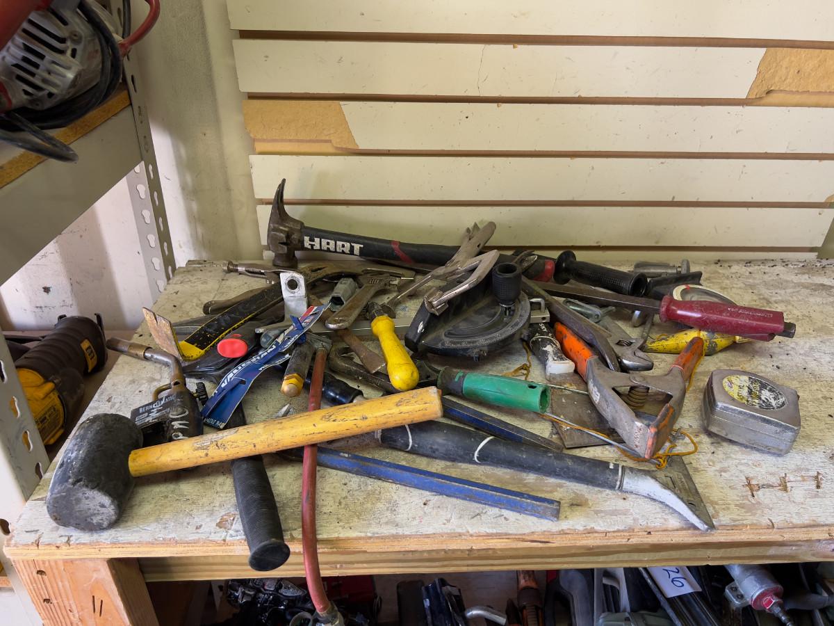 Pile of Hand Tools; Hammer, Torch and Pry Bar