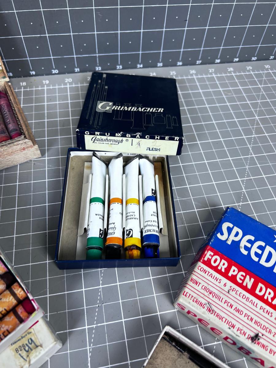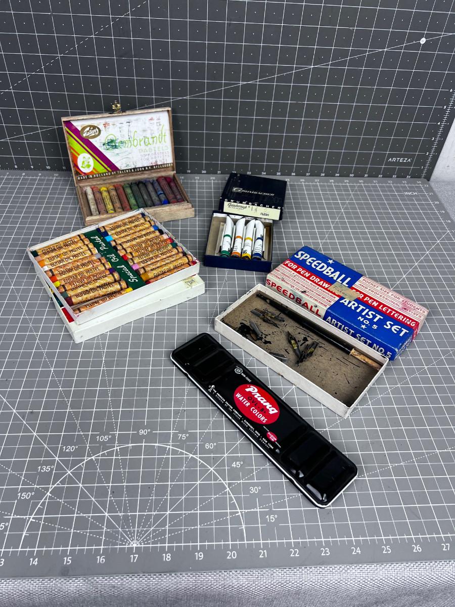 Pile of Paint Supplies; Water Color, Pastel, Oil, Lettering Pens