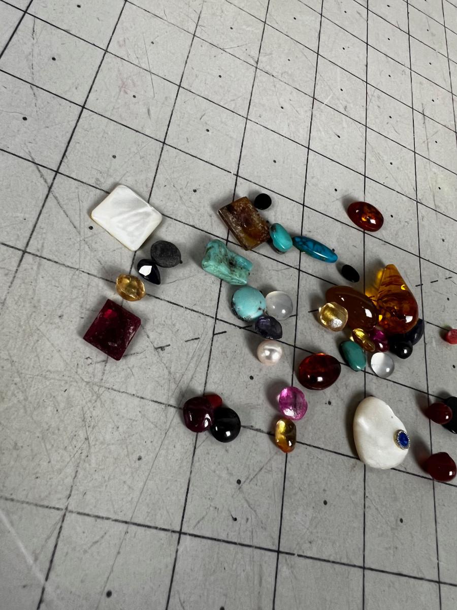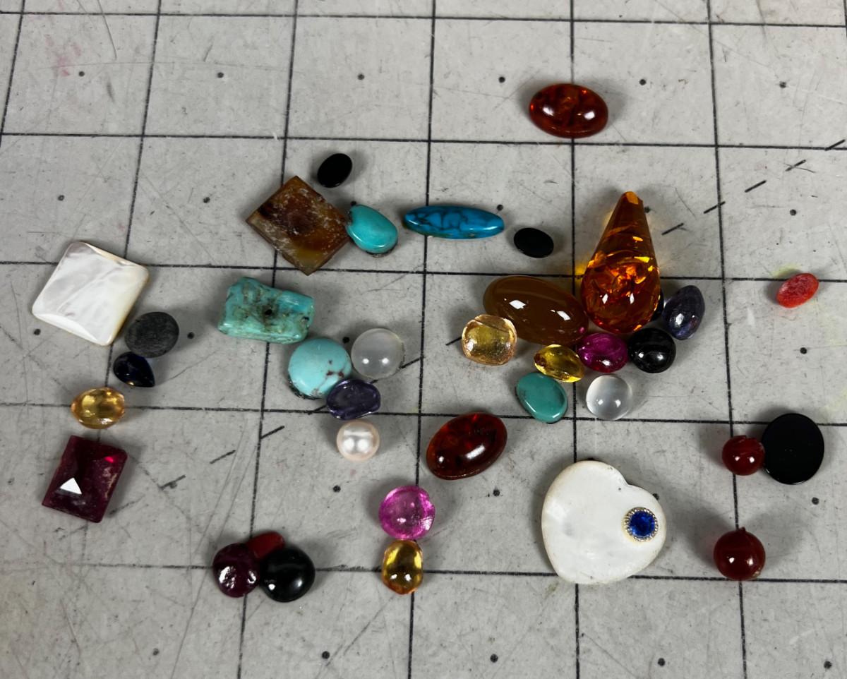 Pile of Semi Precious Stones, Amber, Cabochons etc.