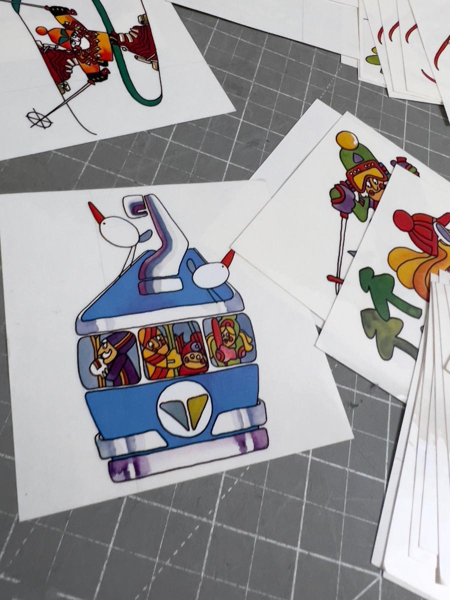 Pile of SNOWBIRD Stickers, Retro Hippie look