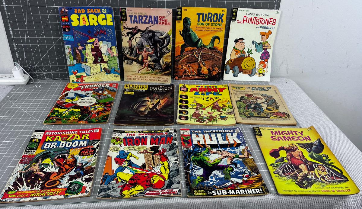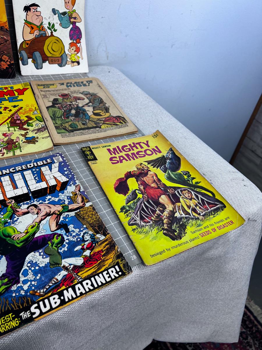 Pile of Vintage Comics, Flintstone & Thunder Agents, Hulk Etc.